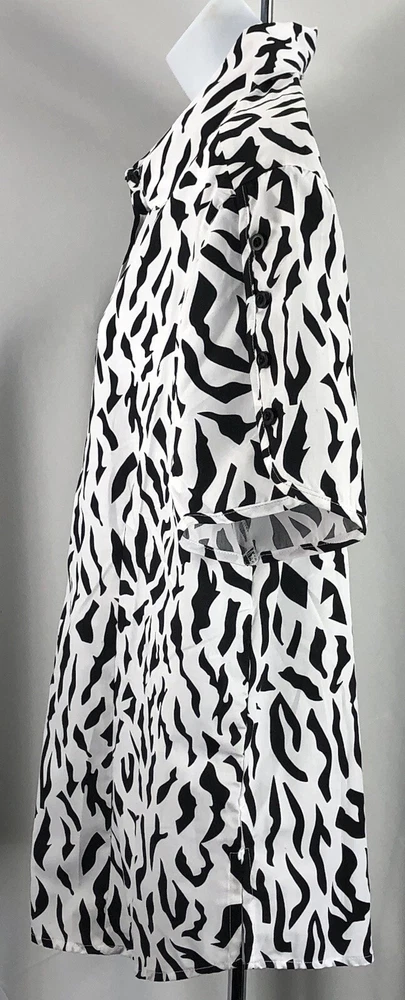 Retro 80's Top Blouse L Wht/Blk Geo Animal Print Button Up Shortsleeve Chest 44 " Length 25 " Excellent Fashion Gem Fast shipping , same or next business day with tracking number for confirmation Thank you Questions? Please let me know I answer questions promptly Have a great day! WalkupandDeal offers great deals on previously loved items....... We inspect each garment for any flaws the item may have: missing buttons,holes,spots,tears or pilling. Our suppliers are carefully selected, so we only offer items that are in Great with minimal wear ,excellent,nearly new or New with tags condition. Information on each item can be found in the "item specifics" tab, including: Size, measurements,fabric content and care instructions. Our faculty is a non smoking environment and each item is laundered & steamed prior to listing and shipping. We strive for every customer to be happy with their items and as always offer a "return for any reason" policy...... ..... Thank you for shopping with us!!!