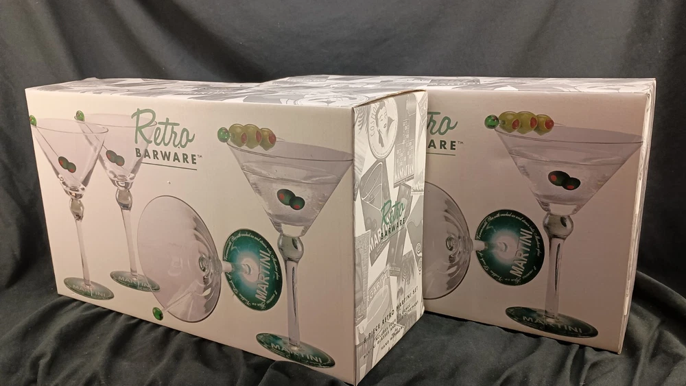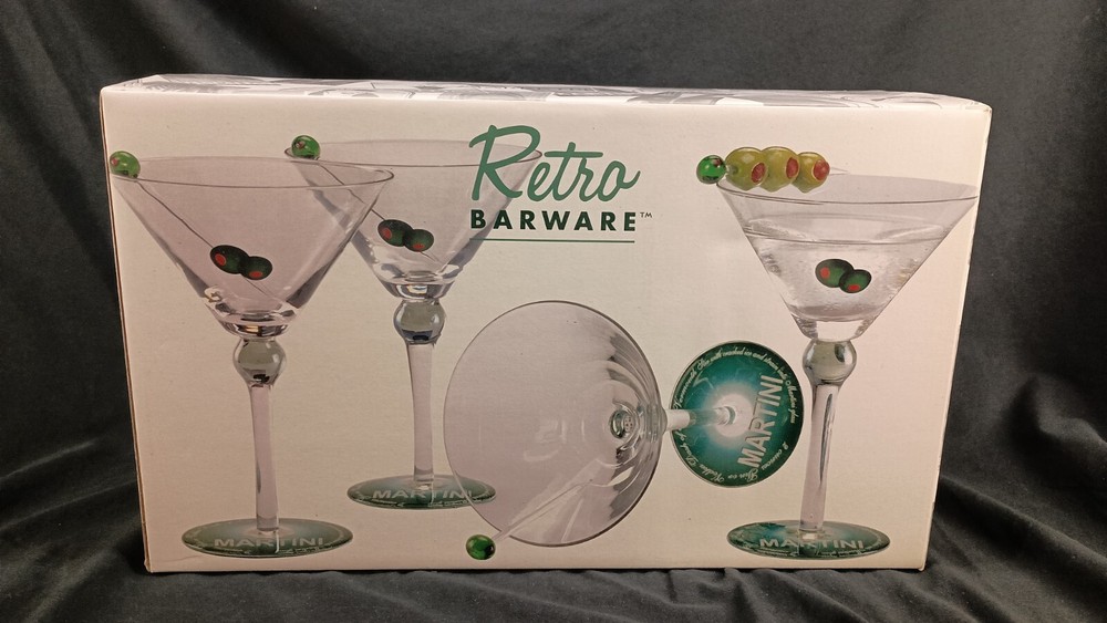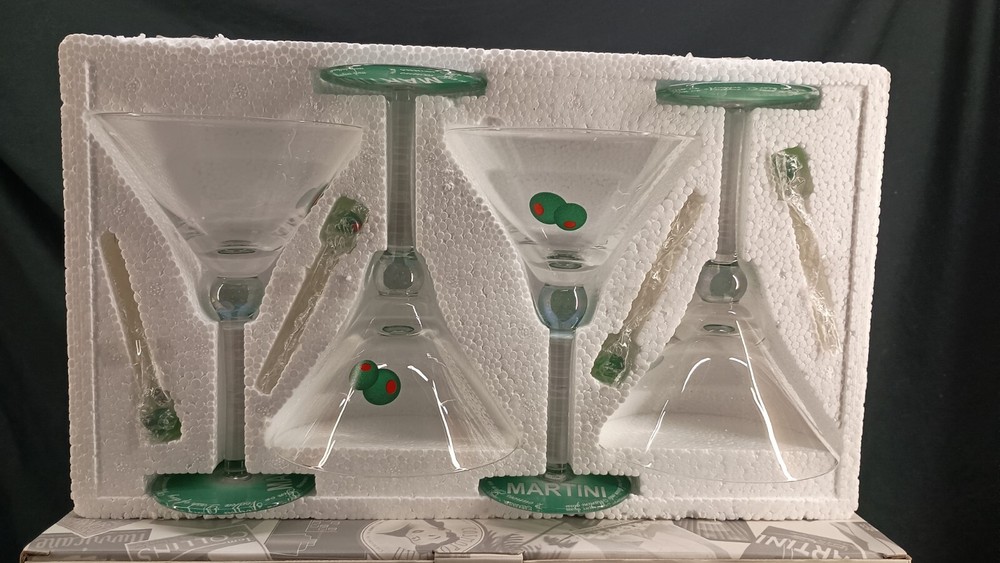 This set from The Marketplace features retro-style barware with a colorful design, perfect for serving martinis in style. Made of glass, the set includes 8 martini glasses and olive picks for a complete cocktail experience. Ideal for home entertaining or adding a fun touch to any bar setup, this set is a stylish addition to any collection. Thank you for visiting my listing today and thank you for your interest in this item! My goal is to have a pleasant transaction resulting in a satisfied customer. I hope any transaction between us leaves you with a feeling of confidence knowing you can trust me and the items I offer here. *Most if not all my listings are set to accept offers. Feel free to send an offer and I will be happy to consider it!! *Please contact me with any questions or concerns and I will be happy to help. *Always examine the photos carefully, and if in doubt, email me with any questions you may have. *Please note that condition statements are offered as a guide only. They will always be somewhat subjective and reflect our opinion, which may not necessarily agree with someone else's opinion. PLEASE READ: I aim to please and I want my buyers to have a positive transaction with me. If you have questions, concerns, or special requests related to any of my items I hope you will contact me so we can work them out to your satisfaction. I sell my items to give you a great item at a decent price while making a little profit at the same time. If you feel the item you are interested in is too pricey do not hesitate to send me a fair offer and I will consider it. My goal is to satisfy your needs and mine so both parties can benefit. SHIPPING: If you prefer a different shipping method or company please contact me and I will do all I can to make that happen. If you have concerns or requests about the packaging of your item contact me and I will do all I can to accommodate them. Shipping costs are based on location in each state or country, the costs always differ. After I have received your payment I will ship your item out within 3 business days or less excluding weekends and holidays. BEFORE PURCHASING & BIDDING: **Please see all the pictures. I do not have great photography skills but I try to get the most accurate photos I can. If you are unsure about something you see in a photo contact me so I can do what I am able to answer your concern about the item. **I cannot stress enough that if you have any questions or concerns please contact me before purchasing and bidding. Communication can solve so much. **As a customer myself, I understand the meaning of customer satisfaction and my goal is to have nothing but satisfied customers. If you are not unsatisfied with your purchase I ask that you please contact me so I can take care of your issue. My goal is for you to be 100% satisfied. INTERNATIONAL BUYERS WELCOMED - PLEASE NOTE: I welcome International buyers! Please be aware that any custom/duties/taxes that the parcel might incur once it is out of the USA are the responsibility of the buyer. Please check with your country's customs office to determine what these additional costs will be prior to bidding or buying. Please refer to the eBay Site Map for more information if needed.