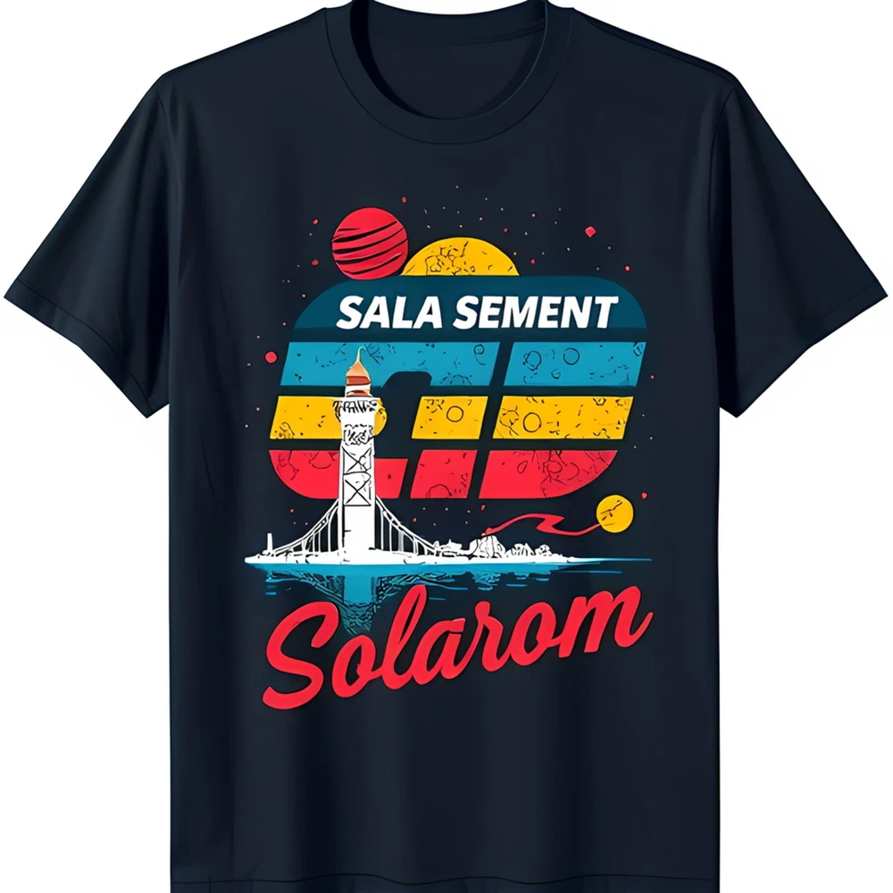Retro Adventure Black T-Shirt with Lighthouse & Bridge Graphic Sala Sement