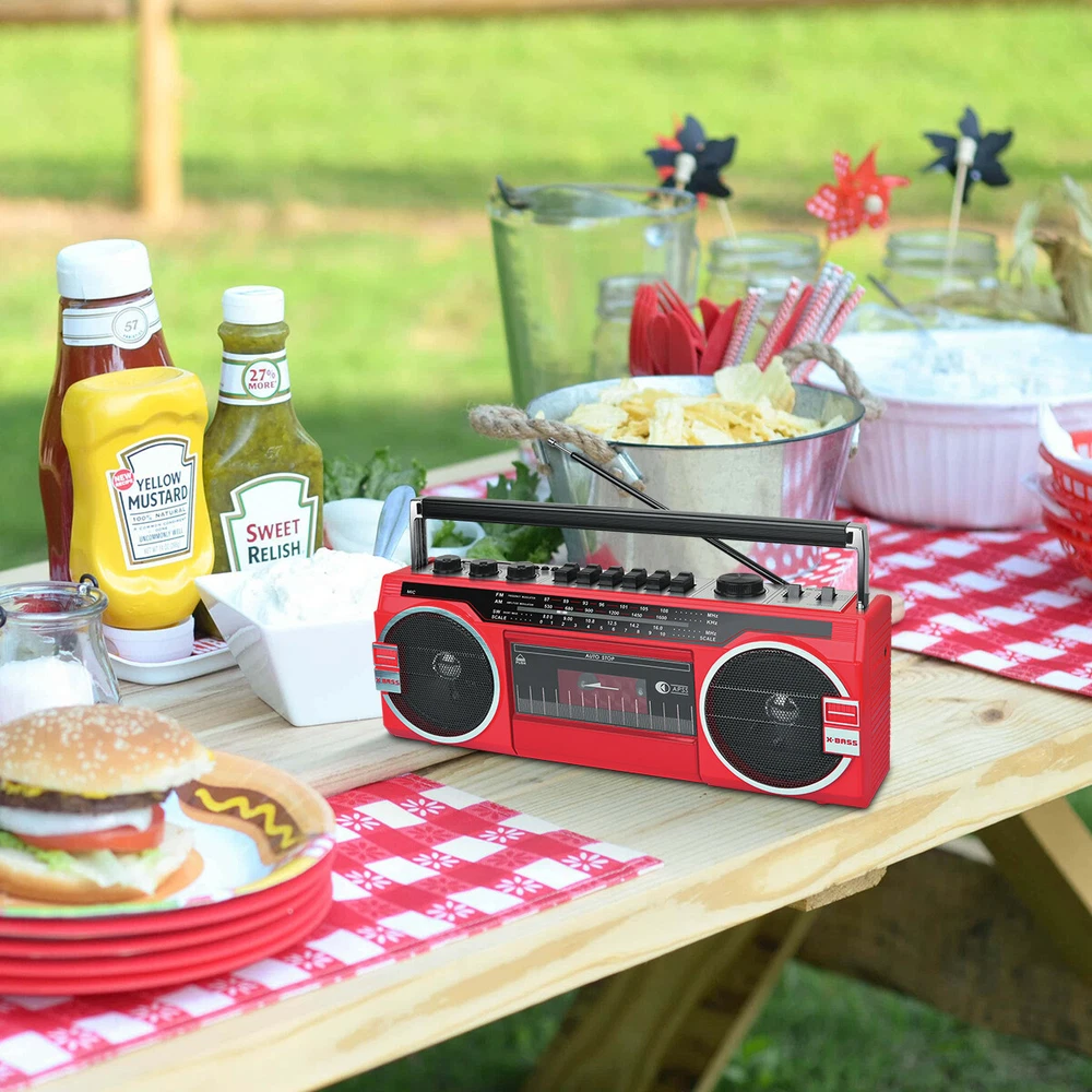 Retro Boombox Cassette Player Recorder AM/FM Radio Bluetooth Way Speaker System
