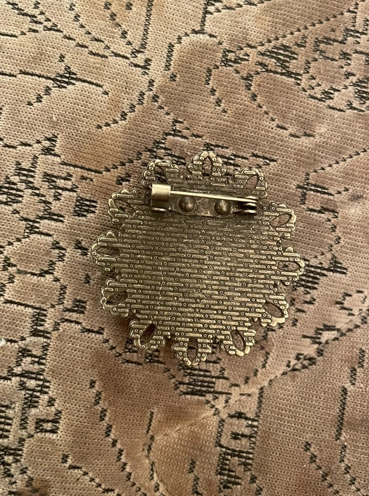 Retro charm. auction is for (1) new without tags Retro Frida Kahlo giallo Vintage bronze Fiore Filigree Brooch Pin. vintage pin on back. 1.5 inches in diameter. Comes in a velvet pouch and gift box. makes a fabbie gift too! will ship worldwide