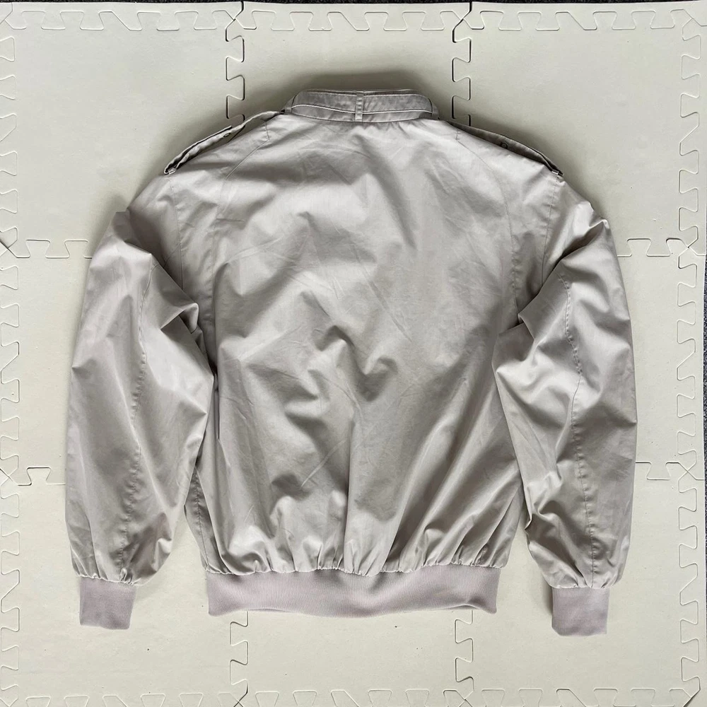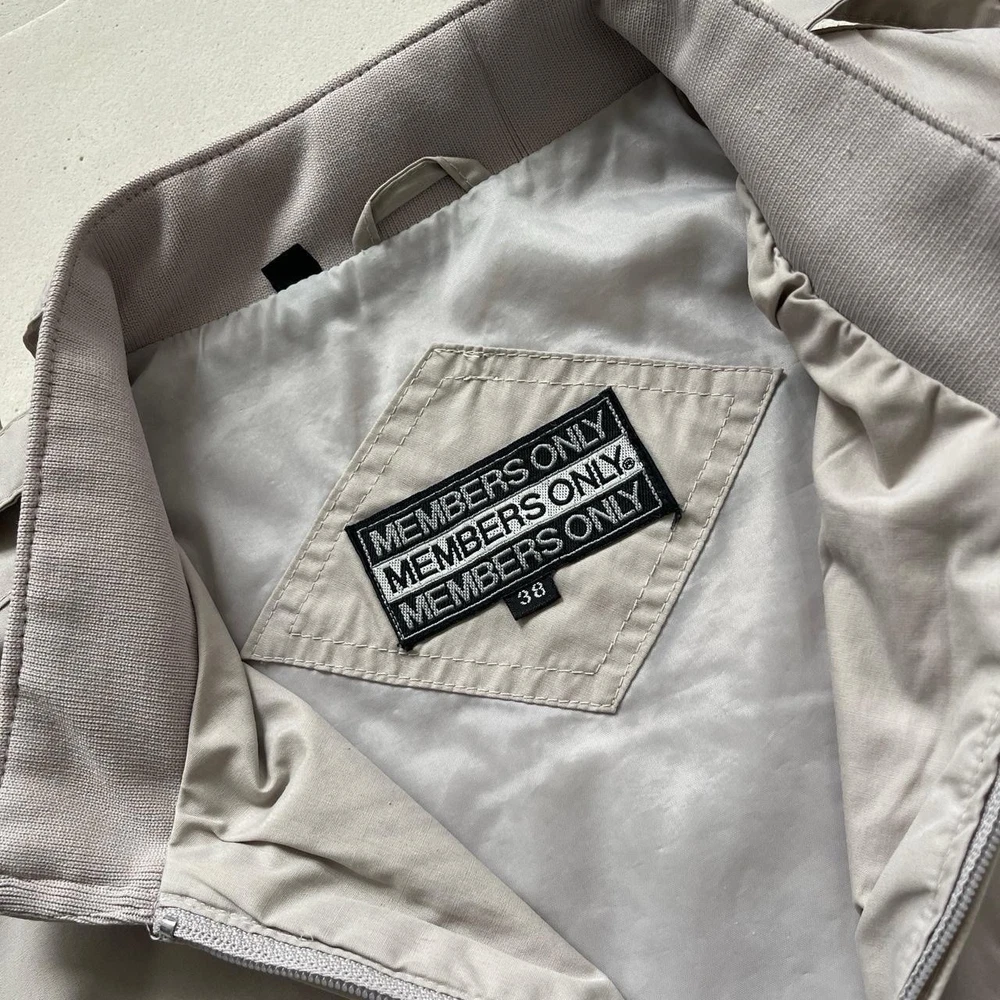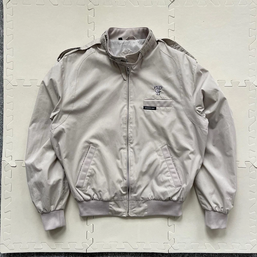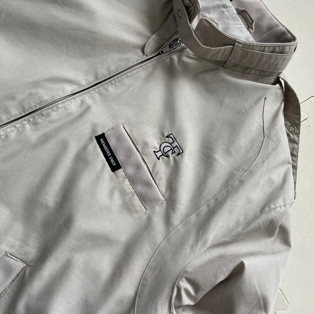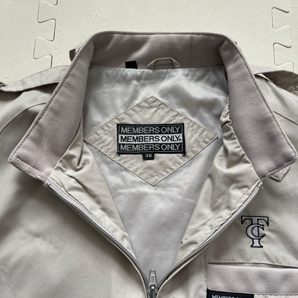 Size: 38 Outer Shell Material: Cotton Blend Colour: Grey Closure: Zip, Snap Type: Jacket Accents: Embroidered Style: Windbreaker, Bomber Jacket Theme: Retro Features: Pockets Vintage: Yes Size Type: Regular Brand: Members Only Department: Men