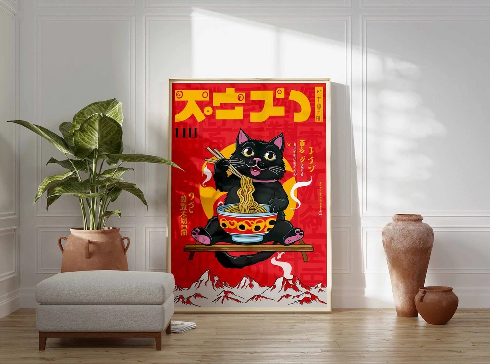 Retro Japanese Poster Japanese Cat Print Botanical Decor Japanese Wall Art Asian Decor Oriental Art Pop Art Print Tokyo Poster Material: Premium luster photo paper Print type: Inkjet printing One side printed + The finish provides the highest possible resolution and color saturation + Lasts up to 200 years in color and 400 years in black-and-white + Printed on high-quality resin-coated photo base paper medium + Posters can be hung with double-sided tape, tacks, or framed + Hand washing with a gentle cry cloth is recommended for extended durability I will hand select the best choice of paper for your chosen design to ensure top quality results for a beautiful, bright and luxurious print. All prints are sealed in cellophane slips for protection during transportation, and are shipped in a protective cardboard envelope.