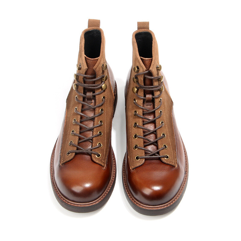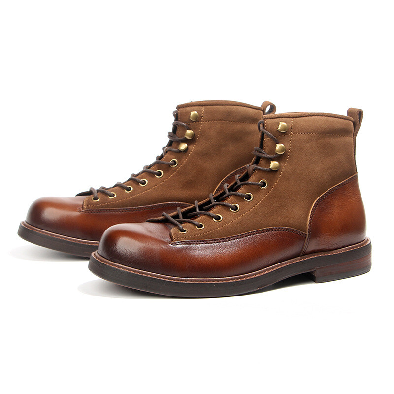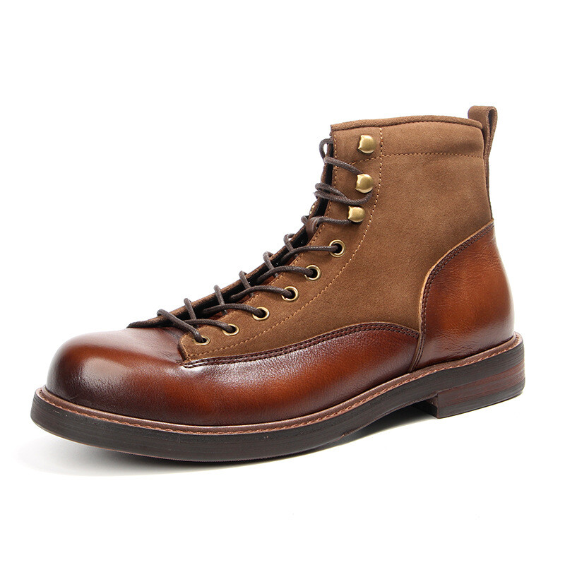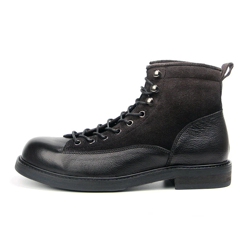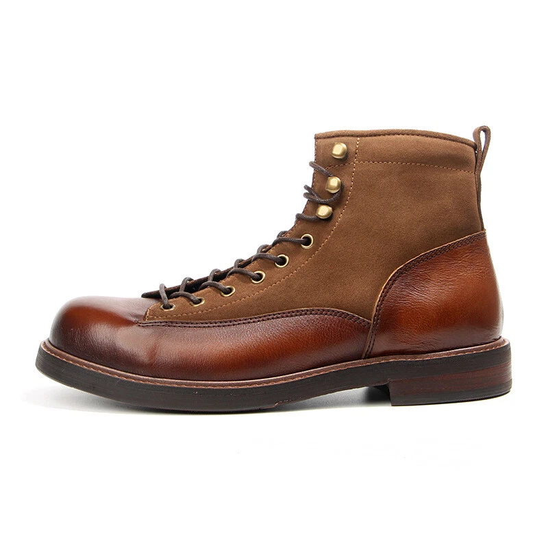 Retro Mens Leather Lace-Up Round Toe Ankle Boots for Work Hiking Casual Wear