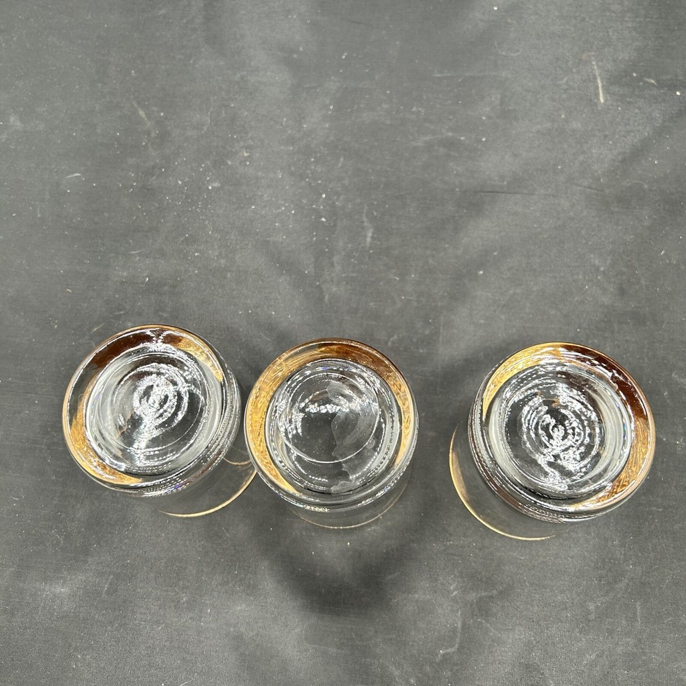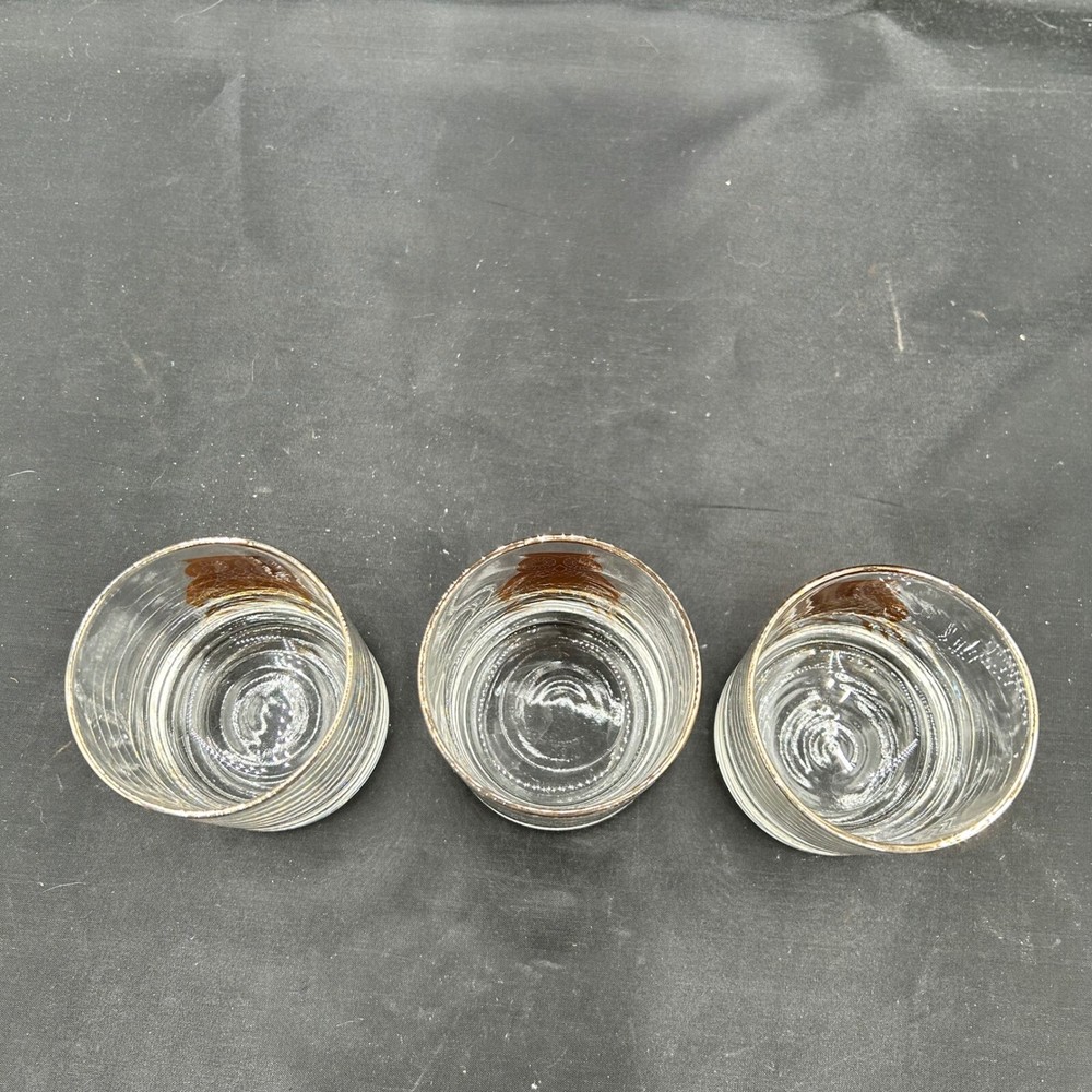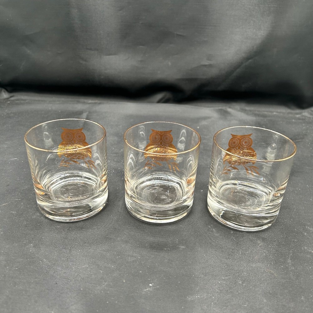 Retro Owl Glasses Set of 3 MCM Gold Rim Vintage Barware Drinkware