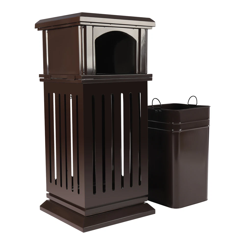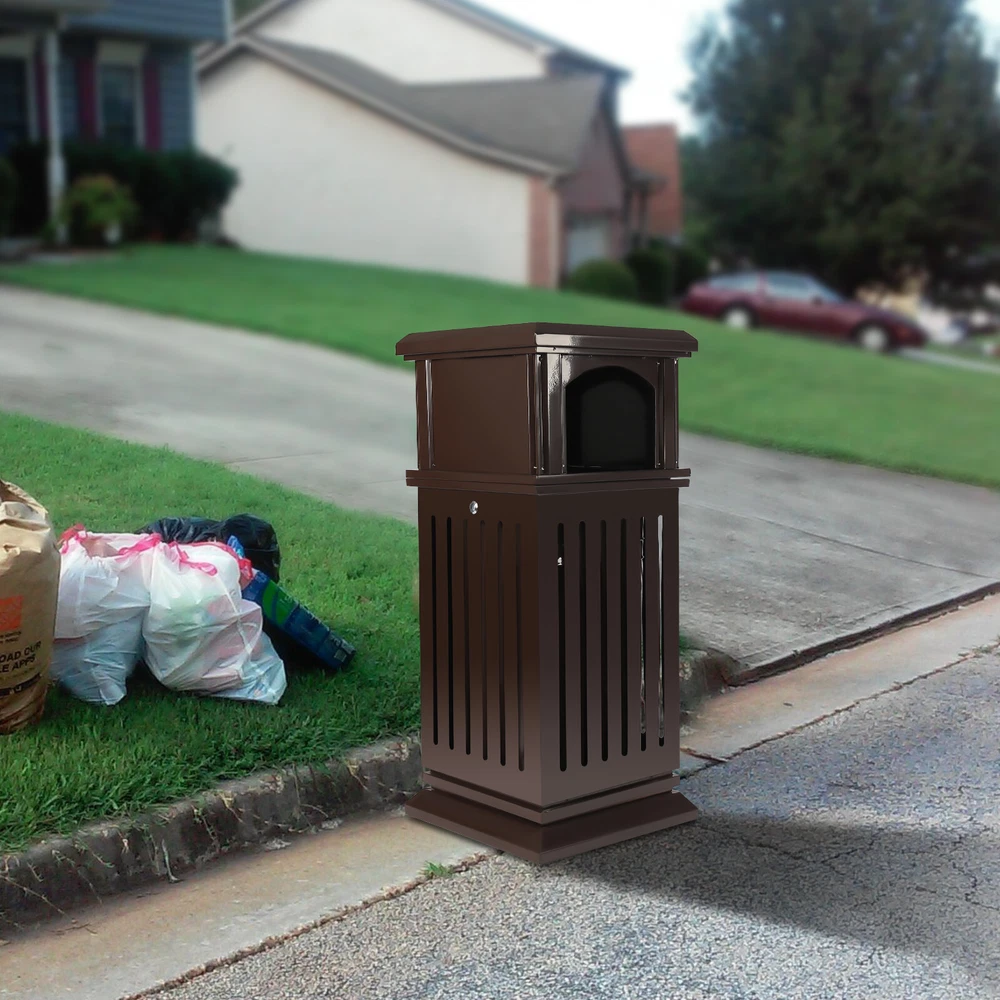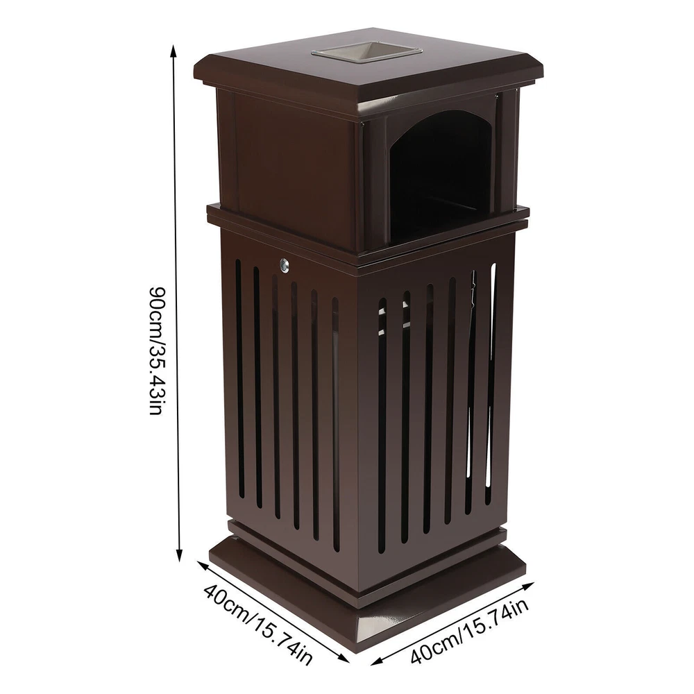 Application It Applies to Indoor or Outdoor Places, Such As Patios, Parks, Lobbies, Shopping Malls, Courtyards, Garages, Offices, Halls, Etc. Specification Material: Galvanized Sheet Color: Brown Process: Spraying Plastics and Baking Paint Style: Modern Shape: Rectangular, Cylindrical Opening Mechanism: Open-top Special Feature: Entrance, Anti-slip Capacity: 40l/8.8gal Gross Weight: 16kg/35.3lbs Net Weight: 15kg/33lbs Package Size: 92*42*42cm/36.22*16.53*16.53in Product Size: 40*40*90cm/15.8*15.8*35.5in Package Included 1*Garbage Can 1*Key 2*Screws Retro Parks Garbage Can Courtyard Open-top Trash Recycle Bin with Flip Lid 40L Retro Parks Garbage Can Courtyard Open-top Trash Recycle Bin with Flip Lid 40l Description An Exquisite and Practical Garbage Can Not Only Helps to Keep the Environment Clean and Fresh but Also Beautifies the Style of the Environment. This Garbage Can Is Made of High-quality Galvanized Sheets and the Exquisite Spraying and Baking Paint Process Can Adapt to Different Indoor and Outdoor Environments to Serve You for a Long Time. Key Features Exquisite Appearance : the Elegant, Antique Brown Surface with Smooth Lines and Hollow Panels Create an Exquisite Appearance, Which Can Add a Classical Style to Parks and Other Venues. High-quality Material : the Surface of a High-quality Galvanized Sheet Is Exquisitely Sprayed and Baked, Which Greatly Enhances Its Ability to Resist Corrosion and Impact, Enabling It to Adapt to Different Outdoor/Indoor Environments. Stable Structure : Thickened and Enlarged Base and Regular Rectangular Structure Provide a Stable Structure for the Product to Improve Wind Resistance . Hands-free Garbage Disposal : the Double-sided Enlarged Arch Opening Design Not Only Facilitates the Disposal of Larger Garbage but Also Allows You to Dispose of Garbage Without Touching the Lid, Which Is More Convenient and Hygienic. Large Capacity : the Large Deep Liner Has a Large Capacity of 8.8 Gallons, Which Makes It Suitable for High-traffic Areas Such As Parks, Schools, or Amusement Parks. It Can Keep the Ground Clean and Trash-free for a Long Time Without Frequent Cleaning. Thoughtful Design : This Floor-standing Garbage Can Is a Versatile Combination of an Ashtray and Trash Receptacle, Not Only Offers Convenient Hands-free Disposal of Cigarettes and Trash at One Location but Also Can Extinguish and Discard Cigarette Butts for Effective Fire Prevention. Stable and Secure : the Lid with Lock Enhances Security to Prevent Theft. for Weather Resistance and to Prevent Vandalism, the Bottom of Weather-resistant Trash Garbage Can Be Fastened with Equipped Screws to the Pavement. Installation-free : the Product Is Shipped As a Whole so It Can Be Used upon Receipt Without Installation, Which Is a Time Saver. Easy to Clean : the Smooth Surface, Simple Structure, and Removable Liner Make It Easy to Clean. You Just Need to Wipe It Gently with a Damp Cloth. Protective Packaging : the Sturdy Cardboard Box Provides Full Protection for the Product to Avoid Damage in Transit. Customer Service : We Aim to Provide Quality Products and Services. If You Have Any Problems, Please Feel Free to Contact Us. We Will Reply and Solve the Problem for You As Soon As Possible. Details Flip Lid : the Top Flip Lid Not Only Prevents Rain and Snow from Entering but Also Makes It Easy to Clean up the Garbage. Carrying Handles : the Two Carrying Handles of the Inner Liner Not Only Facilitate Movement but Also Prevent Hands from Directly Touching the Garbage. Round Edges : the Round Edges Can Protect Hands from Scratches. Application It Applies to Indoor or Outdoor Places, Such As Patios, Parks, Lobbies, Shopping Malls, Courtyards, Garages, Offices, Halls, Etc. Specification Material: Galvanized Sheet Color: Brown Process: Spraying Plastics and Baking Paint Style: Modern Shape: Rectangular, Cylindrical Opening Mechanism: Open-top Special Feature: Entrance, Anti-slip Capacity: 40l/8.8gal Gross Weight: 16kg/35.3lbs Net Weight: 15kg/33lbs Package Size: 92*42*42cm/36.22*16.53*16.53in Product Size: 40*40*90cm/15.8*15.8*35.5in Package Included 1*Garbage Can 1*Key 2*Screws Notes For Safety, Please Completely Extinguish the Cigarette Before Putting It into the Ashtray. Please Allow the Slight Color Difference Caused by the Shooting Light and 1-3cm Error Due to Manual Measurement. Please Make Sure You Do Not Mind Before You Order. Payment Delivery details Terms of sales About us Contact us Payment We accept ebay payment 。 Fees such as import duties, taxes are not included in the item price or shipping costs. These charges are the buyer's responsibility. Delivery details Shipping: 2-9 working days to: USA Terms of sales We maintain high standards of excellence and strive for hundred percent customer satisfaction. Feedback is very important to us. We hope that you contact us immediately before you give neutral or negative feedback, so that we can address your concerns. It is impossible to address issues if we do not know about them! About us Your satis faction is our ultimate goal. We work hard to earn your trust and future business. Our certified technicians have tested each item before shipping. The unit comes with 1 year limited warranty on all manufacturing defects. a) If you receive a defective item, you may return it or ask for a discount. Please contact us within 14 days after you receive the package. b) What you returned must be intact and in its original packaging as re? u. Customer is responsible for shipping costs of the returned item. c) We will cover the cost of shipping back t with the shipping rate indicated in the registration page. We will send you a new unit or refund the full payment you paid. Thank you. Contact us Business Hour Business Hour: Monday To Friday: 8:30 AM to 5:00 PM (Beijing China time) Due to time zones, our reply to your questions may not be immediately. But within above working time, we will reply your email within 24 hours. If it's non-workdays, please kindly be patient
