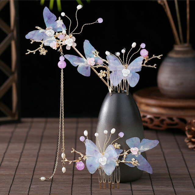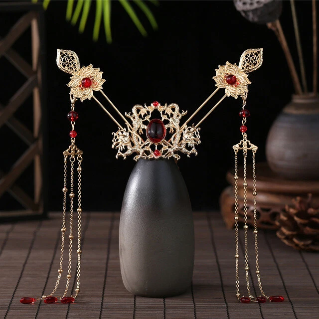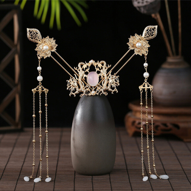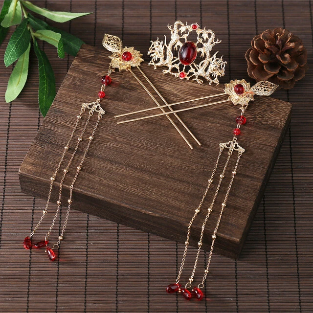 Retro Plum Blossom Hanfu Hairpin with Antique Tassel Hair Accessory