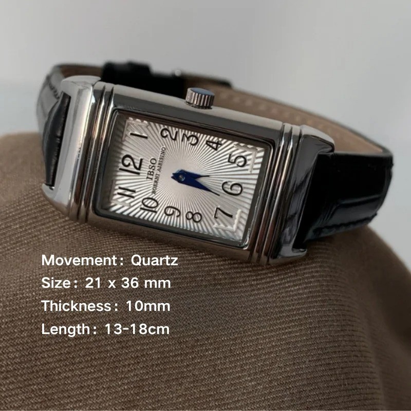 2025 Retro Reverso-Style Slide Design Leather Quartz Watch (21mm) Add timeless elegance to your collection with this retro-inspired square quartz watch. Featuring a unique reversible slide design reminiscent of the iconic Reverso style, this timepiece blends vintage charm with modern versatility. Perfect for both casual and formal wear. ✨ Features Reverso-Inspired Slide Design – Elegant rotating case with a retro twist. Square Case – Classic vintage styling for a refined look. Quartz Movement – Reliable timekeeping with minimal maintenance. Genuine Leather Strap – Comfortable, versatile, and stylish for daily wear. Exquisite Detailing – Fine craftsmanship with a niche, luxury-inspired design. Unisex Appeal – Perfect for men or women seeking a retro classic. 📏 Specifications Case Size : 21mm (square design) Movement : Quartz (battery powered) Strap : Genuine leather, adjustable Design : Retro Reverso-style sliding case Dial : Minimalist with digital markers 📦 What’s Included 1 × Reverso-Style Leather Quartz Watch 1 × Gift Box / Protective Packaging 🚚 Fast Delivery ✔️ Ships within 24 hours ✔️ Estimated delivery: 7–10 working days ✔️ Secure packaging for safe arrival 🎁 Perfect For Watch enthusiasts, collectors, and style-conscious buyers looking for a retro, niche Reverso-inspired timepiece that’s both versatile and elegant.
