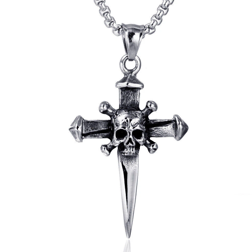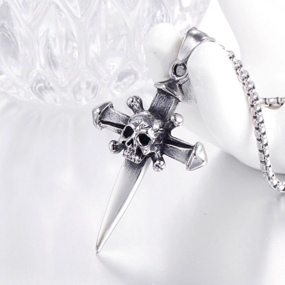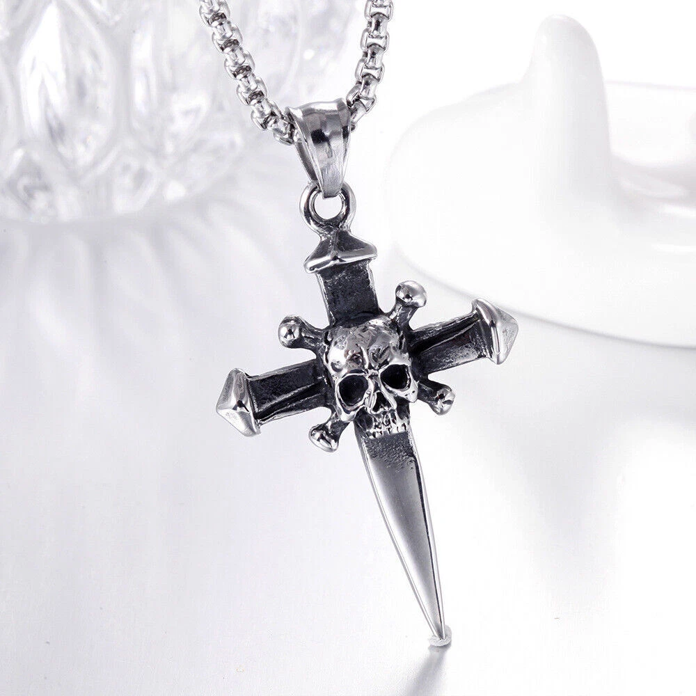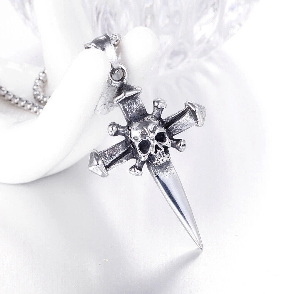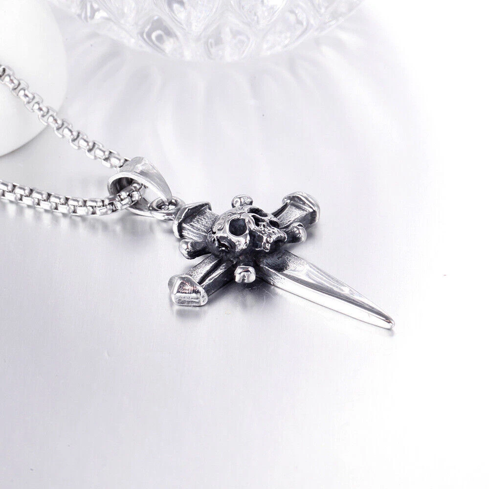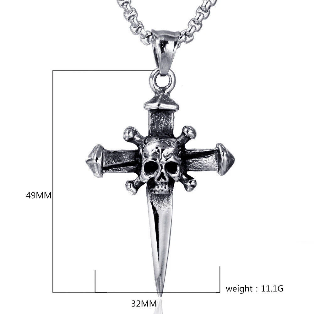 Brand: Cy trendy Material: 316L Stainless Steel Color: Vintage Silver & Black Chain Length: 60cm Dimension: 49mm*32mm Weight: 28g We offer high quality rings by using GENUINE 316L Stainless Steel as material,The 316L stainless steel do not suffer corrosion,tarnish or rust when expose in wet enviroment, it is one of the best metal when choosing rust resistance rings and necklaces because of it's sufficiently reactive to protect itself from further attack by forming passive corrosion product layer The package include: 1 x necklace