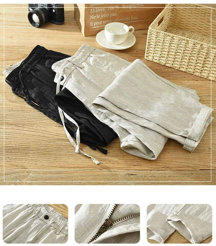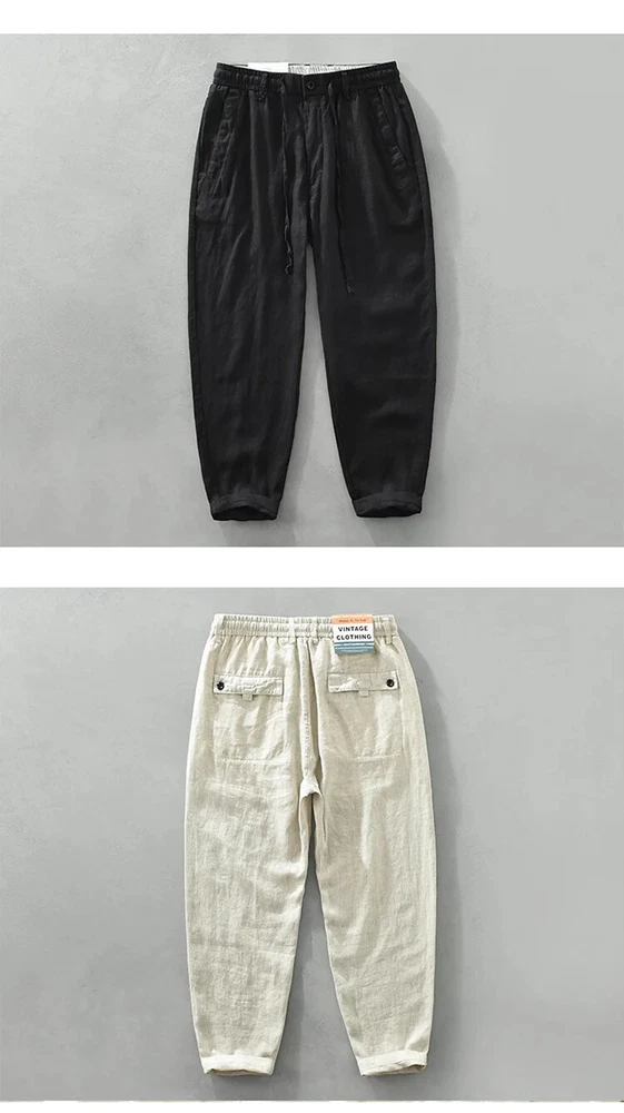 Retro Summer Casual Linen Pants for Men Loose Breathable Streetwear