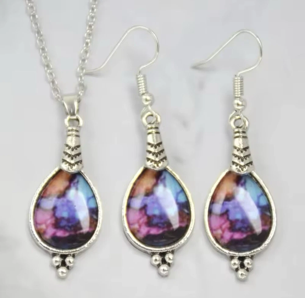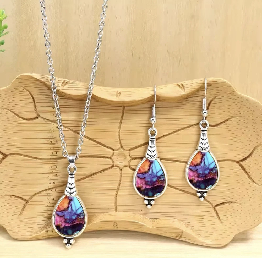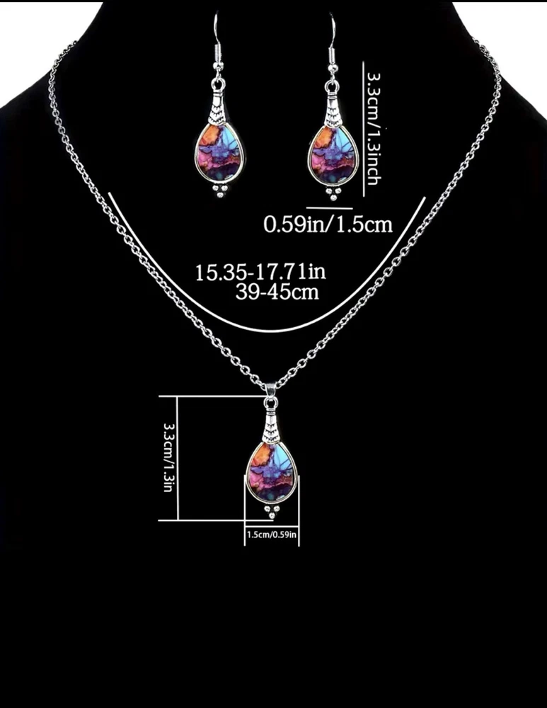 Elevate your style with this stunning necklace and earring set. The set features a waterdrop shape pendant and a rope chain, both made of stainless steel. The pendant is adorned with natural stones, and the multicolour gemstones are arranged in a beautiful hexagon shape. The necklace is 23cm long, and the lobster closure ensures a secure fit. This necklace and earring set is perfect for various occasions, including weddings, anniversaries, birthdays, and Mother's Day. The set is not only elegant but also adjustable, making it a great gift for your loved ones. The gemstones used in this set are of excellent quality and are cleaned using a loupe to ensure their clarity. Please note that the pictures can be slightly different from the item! Thank you