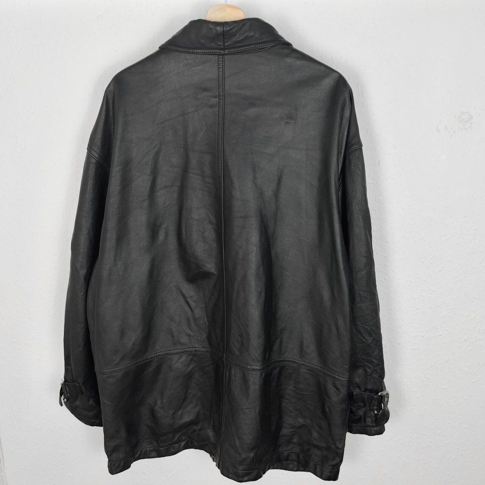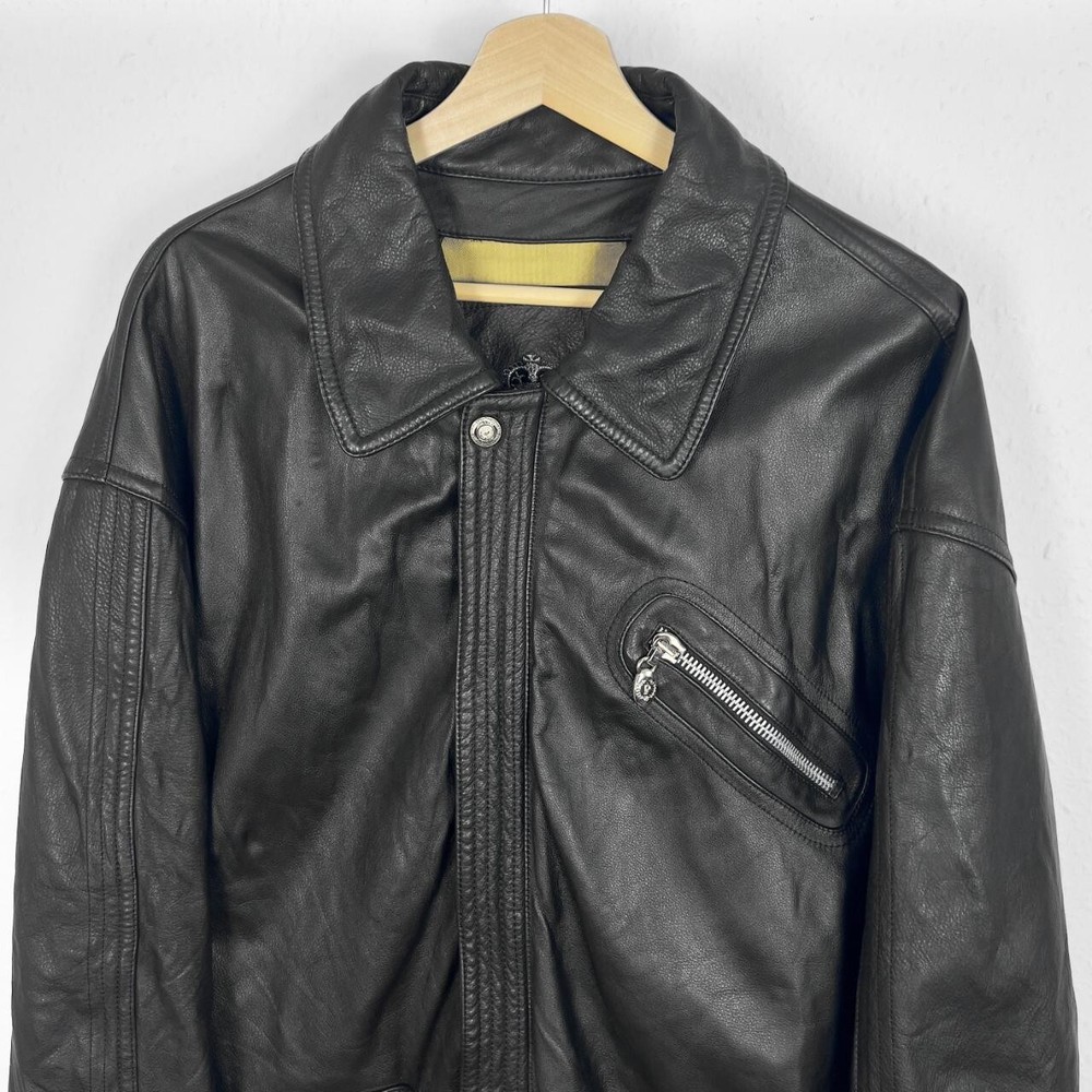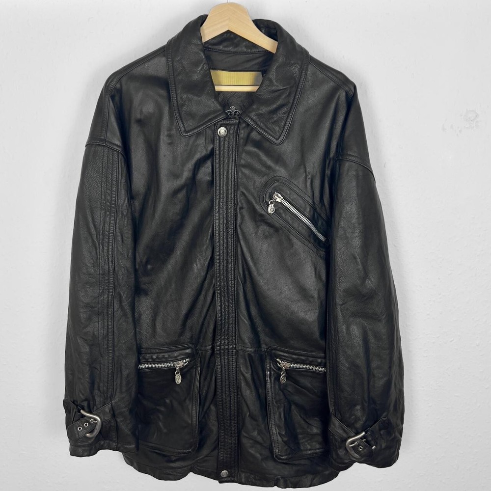 Vintage leather jacket in black. Biker style with zippered pockets & buckles on sleeve cuffs. Has full zip & button up front plus lining - in good vintage condition. Labelled size 52 fitting approx. a size medium or suits smaller oversized, measurements below Length: 32 inches Pit to pit: 24.5 inches £3 UK P&P 💌 Model is 5’9 and a men’s medium Please get in touch for more measurements All items are second-hand so please expect small signs of wear - any major flaws will be noted