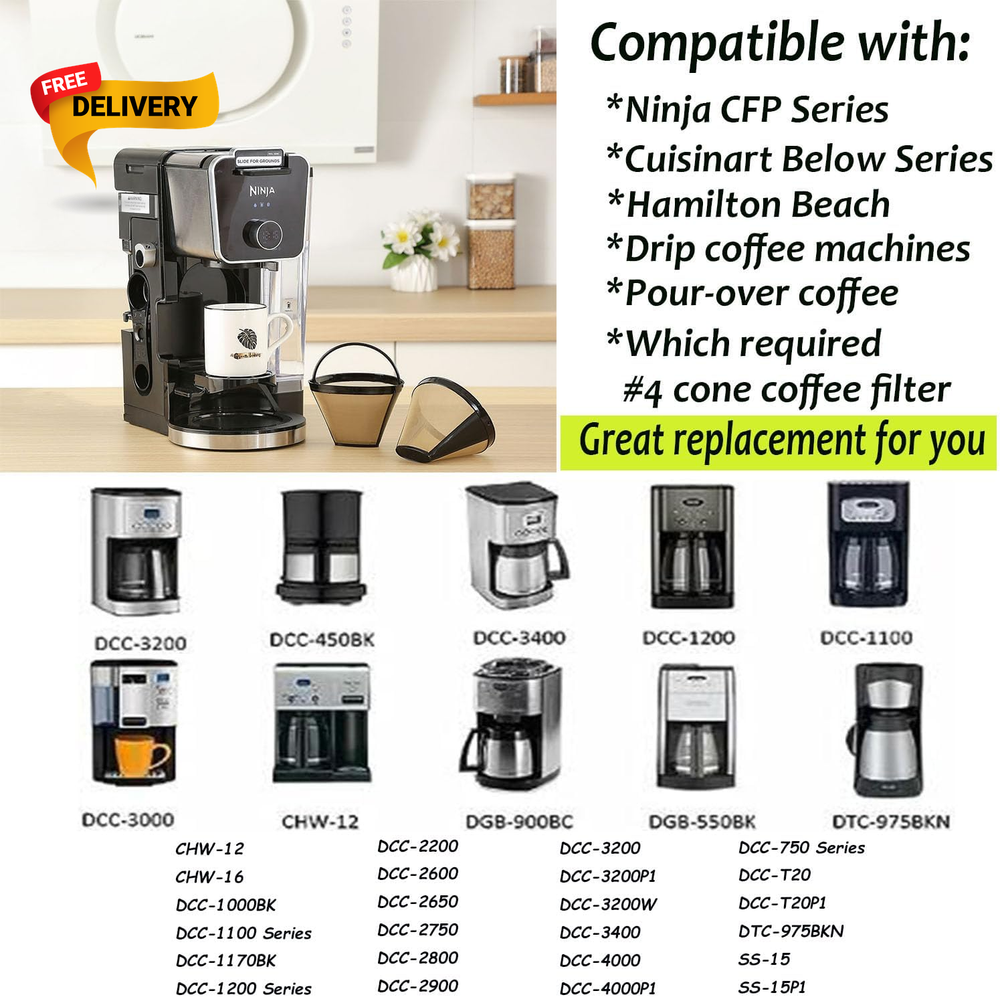 Fast Shipping On All Items 30 Days Money Guarantee Customer Support Excellent Service 100% Satisfaction Satisfaction Guaranteed Reusable 4 Cone Coffee Filters Basket Replacement for Cuisinart Coffee Makers 2 Specification Unit Count 2.0 Count Material Stainless Steel Country of Origin China Item Weight 5.3 ounces Shape Cone Package Dimensions 4.84 x 4.76 x 4.29 inches Number of Pieces 2 4.76 inches x 4.84 inches x 4.29 inches. Weight: 5.3 oz Item Description Compatible with Cuisinart,Ninja,Hamilton Beach coffee makers,drip coffee machines,pour-over coffee,which required NO 4 cone coffee filter.As a replacement coffee filter for your coffee bar brewers.These work well. 400*400/square inch ultra-fine filter holes,made of food grade stainless steel.Perfectly filter for get a pot of pure coffee flavor.Note:If the ground coffee is too fine, there will be some coffee grounds in the pot.8-12 cup basket coffee filters. Reusable #4 coffee filter,replaces your old filter to get a better filtering effect.Besides,you can save a lot of money by using reusable coffee filters instead of paper filters. These No 4 cone coffee filters are easy to clean under running water.Repeated use. Please check the size and model before purchasing.We have provided the size reference. If you need help, please feel free to contact us. About us We offer the best prices around on high quality products. Our E-store includes media such as books, movies, music and games while offering electronics, toys, sporting apparel, clothing, tools, general home, garden items and more. Shipping We are always working hard to ensure your package arrives as soon as possible. Please understand that some factors like weather, high postal traffic, and the performance of shipping companies are outside of our control. We offer free shipping to the lower 48 states and ship within 2-3 business days of payment, usually sooner. We do not accept P.O. Boxes. Please provide a physical address. For shipping outside of the continental USA, we only use eBay's Global Shipping Program.The item is shipped to KY and then sent to the rest of the world. International customers are responsible for all duties and taxes. Continue to check out to calculate costs for shipping the item to your country. Messages regarding eBay's Global Shipping Program MUST be directed at eBay EXCLUSIVELY. Returns We offer a 30-Day Return Policy on items in which you are not completely satisfied with. You have the option of a full-refund or an exchange of the item. No returns are available on items shipped outside of the USA Satisfaction We try over very best to make sure every customer is completely satisfied. If there's a problem, message us! We're happy to help. Payment Options Shop With Confidence