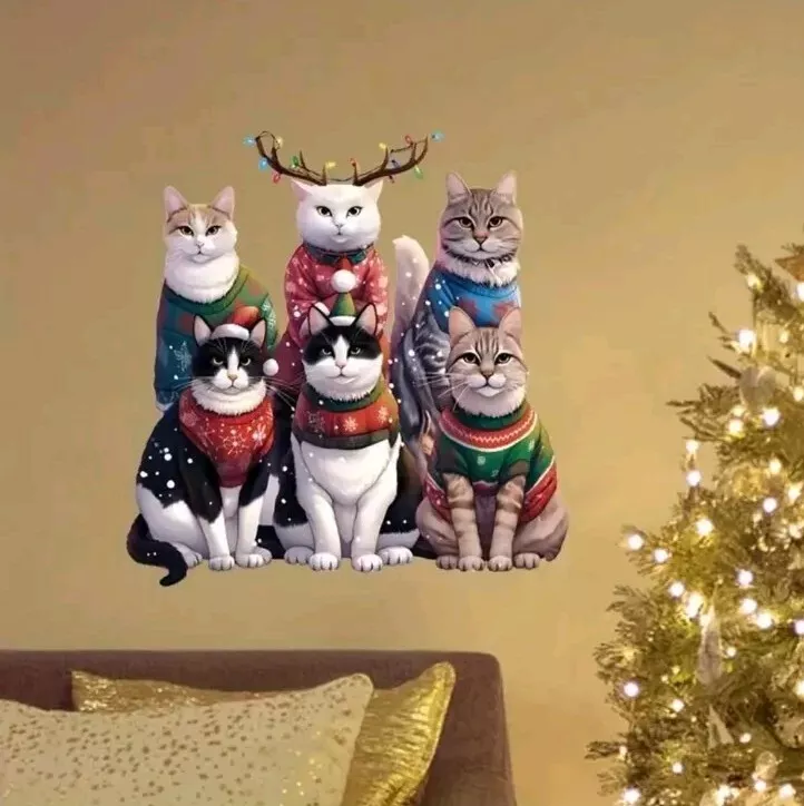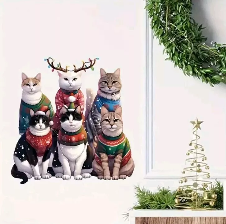 Reusable Christmas Cat Window Clings Matte Finish