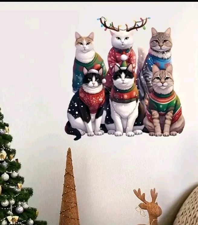 Add some festive charm to your home with these reusable Christmas cat window clings. Featuring an asymmetrical shape and a multicolor animal print pattern, these decals are perfect for any room. Made of high-quality PVC material, they are durable and long-lasting. The self-adhesive and removable features make it easy to hang them on any smooth surface, and the matte finish gives them a unique and elegant look. These decals are suitable for windows and are sure to brighten up any space. Get your hands on these cute and stylish decals today!