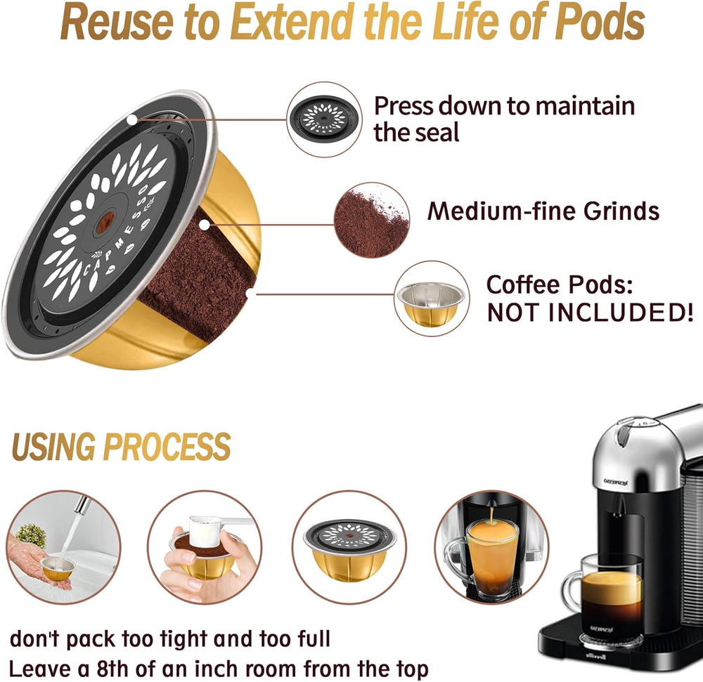 Store New Arrivals Add to Favorite View Feedback Reusable Coffee Capsule Lids for Reusable Nespresso Pods Vertuoline, Food Grade Silicone Caps for Every Sizes of Refillable Vertuoline Pods with Scoop and Brush(3Pcs Silicone Caps-No PODS) Description Item model number reusable nespresso vertuo pods covers Unit Count 3.0 Count Number of Pieces 3 Material Silicone Item Weight 2.11 ounces Shape Disk Package Size Name 3-Pack Package Dimensions 3.7 x 2.36 x 0.94 inches Size 3PCS Silicone Caps Perfect match for Nespresso Vertuoline pods: Precisely fits for all sizes of reusable Nespresso vertuoline pods: 1.35 oz; 2.7 oz; 5 oz; 7.8oz and 14 oz. And these vertuoline capsules with our silicone reusable vertuoline lids can be inserted into all vertuoline machine on market included Vertuoline GCA1,VertuoPlus and Vertuoline Next. 🛎️🛎️Bottom Capsules are not included! Reassured Silicone: Our vertuoline pod lids are made of 100% food grade silicone,non-toxic; corrosion-resistant; reusable and durable up to many years. Soft and flexible shape that can be perfectly matched original nespresso vertuoline pods to extract fully and reproduce the same strong flavor and creamy coffee without damaging your expensive vertuoline machine It couldn't be Easier: Just rinse your used nespresso vertuoline pods, fill with medium-fine grinds, press lid until even with capsule edge, insert our refillable vertuoline pods lid on and brew! No learning curve, no mess, enjoy your own fresh coffee has never been easier! Included 3 pcs silicone lids,1pc sccop and 1pc brush for family use or friend party🛎️🛎️Capsules not included! Economical and Sustainable: The more you use, the more you save. Our vertuoline reusable pods lids allow you to refill the expensive vertuoline pods for saving everyday's coffee pod cost,make your own flavor economically and reduce plastic waste in landfill as well New Version of Perfect Design: Updated design of the inlet hole of the silicone caps, which will reduce the possibility of backflushing of the grinds residue, thus keeping the machine outlet clean, reducing the cleaning times and extending the life of the machine. Tested over 10000+ times on all Vertuoline machine before launching Product description If you are so tired of limited coffee flavor and guilty of wasting more disposable vertuo pods. These silicone vertuo pod lids are an economical and green solution for you. After cleaning and reusing the used vertuo pods continously, it will save more money in your pocket, extend your coffee choice and produce less waste on planet. Precisely fits for all sizes of reusable Nespresso vertuo pods: 1.35 oz; 2.7 oz; 5 oz; 7.8oz and 14 oz vertuo pods . We've tested over 10000+ times on vertuoline machine, these lids work with all vertuoline machine on market (vertuo GCA1, vertuo plus,vertuo pop and vertuo next) , if you meet red light ,please do not worry and check below: Press the lid down: Press lid until even with capsule edge to maintain the seal so the machine can operate normally. Check Grind Size: Excessively fine grinds that can clog the lid's holes. Opt for fresh dark roasted medium grinds(check the grinds of original pods) for the best results. Also,leave about 0.3 inch space between the coffee and the reusable lid to allow for proper water flow. Please note that our dedicated team is here to promptly address any issues you may encounter, we support re-fund and replacement for you at any times! [The Newest Version of Perfect Design] Updated design of the inlet hole of the silicone caps, which will reduce the possibility of backflushing of the grinds residue, thus keeping the machine outlet clean, reducing the cleaning times and extending the life of the machine. Easier and faster operation than ever! ***How to Brew Strong Coffee:*** use an used vertuo pod, remove the foils and clean it out fill with dark roast with a medium fine grinds, lightly and evenly press down grounds, leave 0.3 inch space between grounds and lids. Press the silicone lid level with the capsule rim. insert into machine and brew! Tip: Ensure enough and fresh fine-medium grounds! Using coffee grounds that are too fine or too tightly packed can easily lead to clogs. Insufficient powder may cause lid collapse, resulting in weak coffee and grounds left! The flavour is depend mainly on how precisely your grind and fill the pod. Check with original pod and fill with your favorite medium grounds, brew and enjoy your own blends! We will always focus on research and development to bring our customers safer, more economical and higher quality reusable products. Our goal with every reusable capsules and lids are to make your morning easier. So you can enjoy your own coffee drinks at home! The perfect match lid design and clean easily features will minimize the amount of time you spend preparing coffee, so you can elevate your morning and seize the day. Package Included: 3* Silicone Vertuo Pods Caps; 1* Brush; 1* Scoop ( !!Bottom Capsules are Not Included!!) ABOUT US We offer the best prices around on high quality products. Our E-store includes media such as books, movies, music and games while offering electronics, toys, sporting apparel, clothing, tools, general home, garden items and more. SHIPPING We are always working hard to ensure your package arrives as soon as possible. Please understand that some factors like weather, high postal traffic, and the performance of shipping companies are outside of our control. We offer free shipping to the lower 48 states and ship within 2 business days of payment, usually sooner. We do not accept P.O. Boxes. Please provide a physical address. RETURNS We offer a 30-Day Return Policy on items which you are not completely satisfied with. You have the option for a full-refund or an exchange of the item. No returns are available on items shipped outside of the USA. PAYMENT We accept PayPal. CONTACT US This page content is yet to come Please ad us to your favorite seller and vis