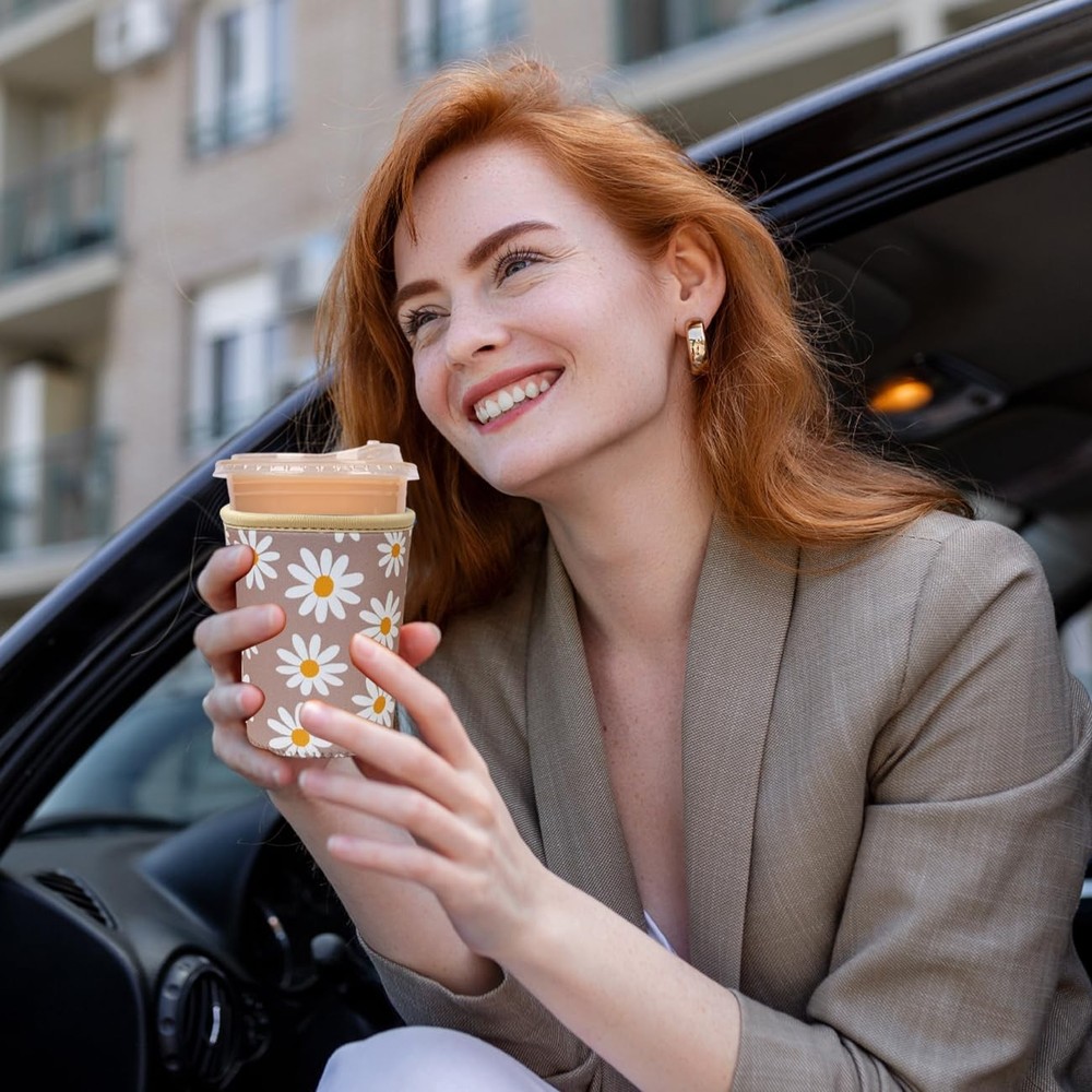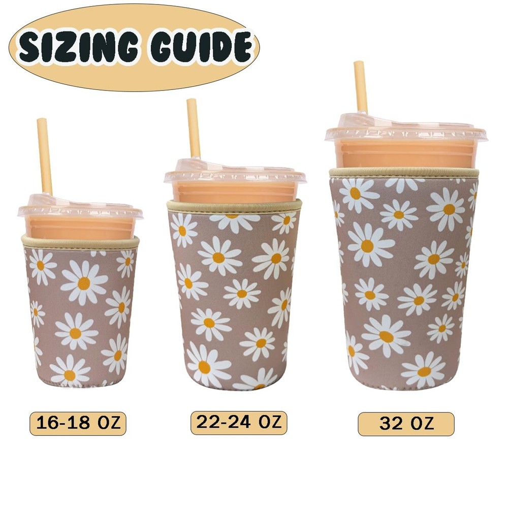 Reusable Insulated Neoprene Iced Coffee Cup Sleeve, Large, Sunny Daisies Description Features: Unique Designs, Exclusively Yours: All three cup sleeves in each set showcase exclusive, eye-catching designs that are unique to our product. These stylish and fun patterns are not available elsewhere and will add a personal touch to your smoothie, iced coffee, or boba tea, enhancing your overall drink experience. Keeps Drinks Cold, Hands Dry: These reusable insulated sleeves are crafted from high-quality neoprene, which not only helps to maintain the perfect temperature for your cold drinks but also keeps your hands dry. You can enjoy your beverages comfortably, free from the concern of messy condensation. Durable and Long-Lasting: Made from durable, flexible neoprene material, our cup sleeves are built to withstand daily use. They are easy to clean, making them a reliable solution for enjoying your drinks on the go. Fits Multiple Drink Sizes: Designed to fit a variety of cup sizes, these sleeves are perfect for both standard and large cups, whether you're enjoying an iced coffee, a smoothie, or a boba tea. This versatility makes them ideal for daily use. Cost-Effective Reusability: Choosing these reusable cup sleeves means you can enjoy your drinks without the need for disposable alternatives. These convenient, long-lasting drink accessories help you save money over time. Product Details: Handling We will ship all orders within 1 business day of payment. Delivery We Do Not Ship Outside of the Continental US. Return Policy All items qualify for returns within 30 days of receipt. Buyer is responsible for return shipping on any item that is not damaged. Feedback We take our reputation seriously, we buy and sell online, so we understand the value of trust. If you are unsatisfied with your order, please contact us and we will work with you to resolve it to your satisfaction.