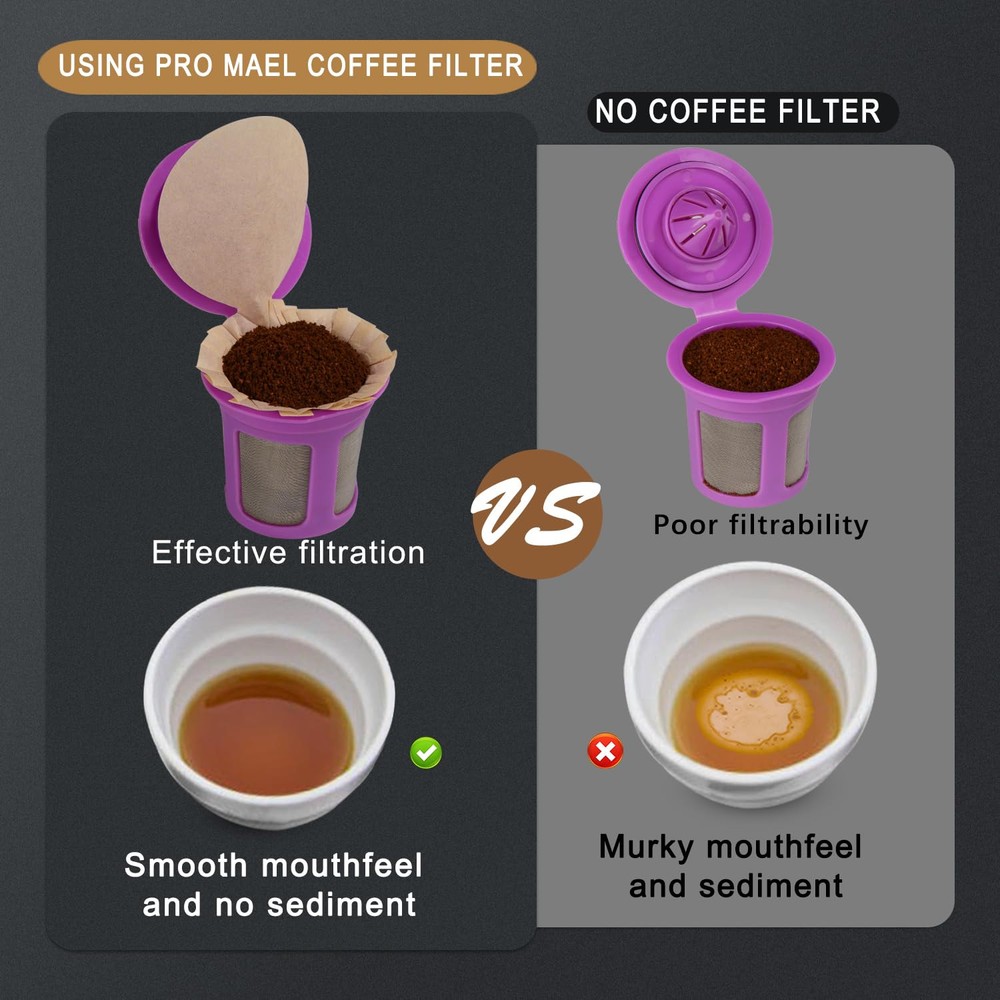 COMPATIBILITY: k cup filter paper is compatible with , MaxRona, Kicovitifa, PERFECT POD, LivingAid, GoodCups, LivingAid, Delibru, WYMECT, InwodiTeki plastic reusable k cups BETTER FLOW THROUGH: Imported German paper disposable coffee filter for Keurig 1.0 and 2.0 single serve, thinner and better flow through, no blowouts EFFECTIVE FILTRATION: Enrich and smoothen coffee taste, say goodbye to sediment EASY CLEANUP: No mess, no silting filter mesh, just remove and toss out the disposable filter BLEACH-FREE OXYGEN CLEANSING: No chemical residue, no harm to body U.S. Patent No. 10,865,039