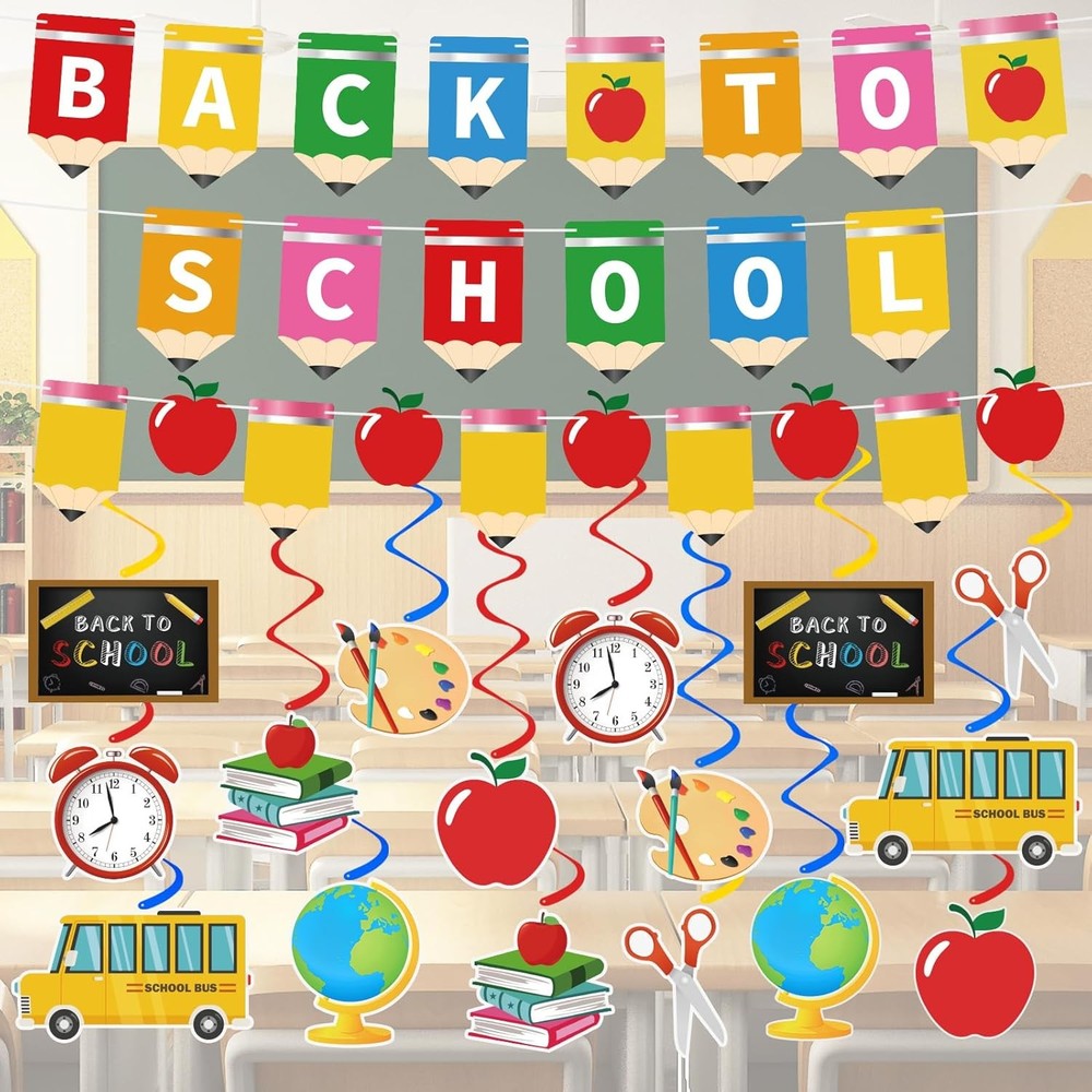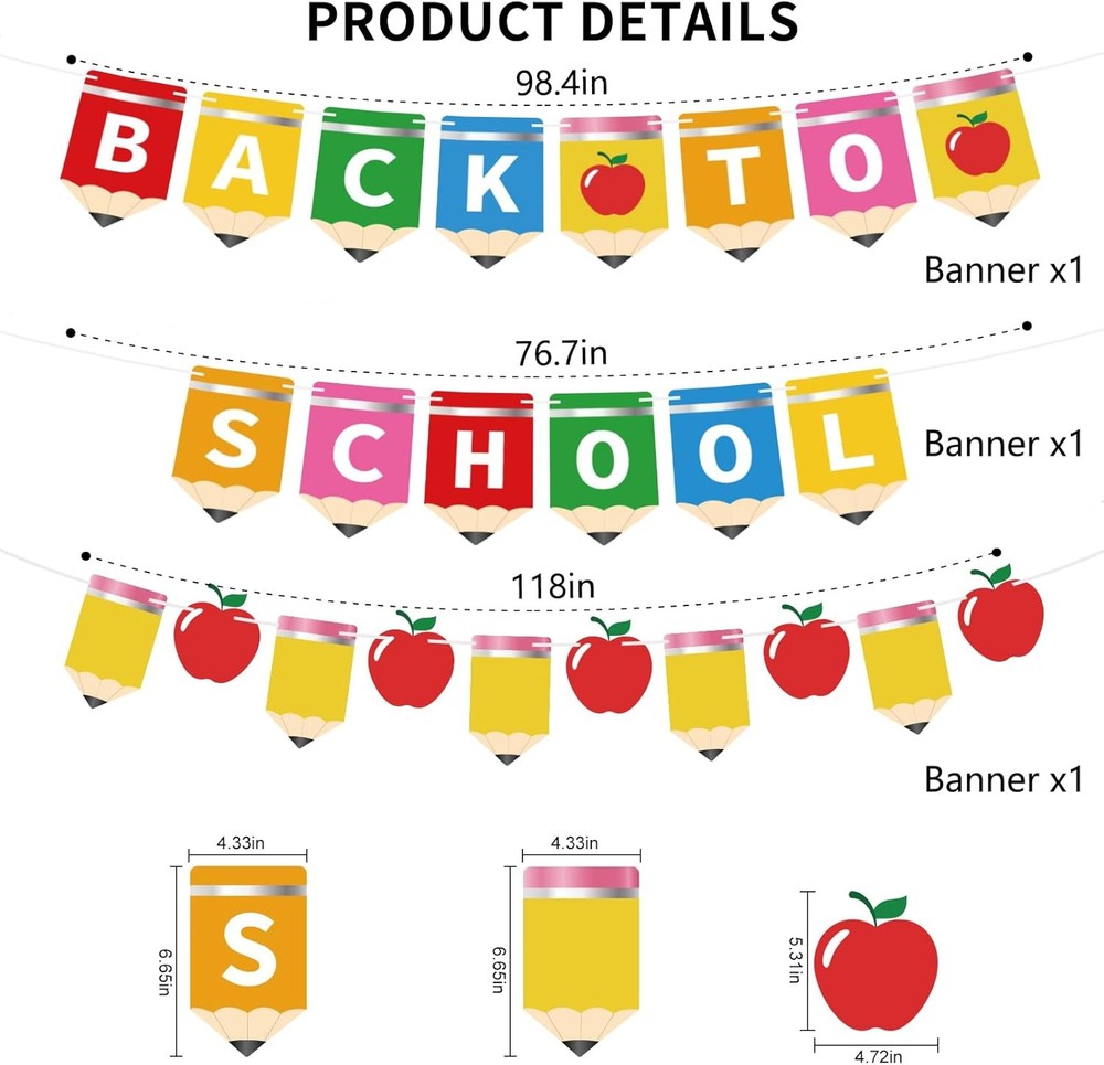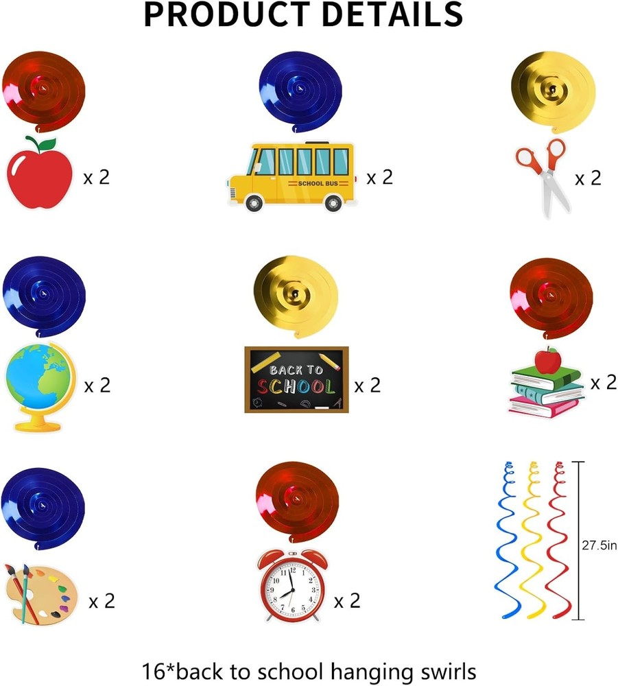 Free eBay listing template designed by dewiso.com Back to School Decorations NO-DIY Reusable Back to School Banner with Hanging Swirls Pre-Assembled First Day of School Decorations for Party for Classroom Office Home FREE AND FAST SHIPPING! About this item Rich Content: Our back to school decorations come with 1 "back to" banner, 1 "school" banner, 1 "apple + pencil" banner and 16 pre-assembled school theme elements double-sided hanging swirls cutouts with swirls streams and clear plastic hooks for hanging. No DIY Required for Easy Use: The banners were pre-strung. Our pre-assembled suspension swirl decorations come with connect buckles, enabling direct and effortless installation. Save time and enjoy! Premium Material, Reusable: Made of sturdy, reusable cardstock, these double-sided decorations resist bending and tearing. And can be reused at every event, saving you money! Featuring vibrant, timeless, fade-resistant patterns, they fill classrooms with unique atmosphere and joy. Perfect School Party Decor: Ideal for back-to-school, welcome parties, first day of school celebrations, and classroom use in schools, colleges, offices, and kindergartens. Instantly brightens any space for daily use or events, doubling as a fun photo backdrop. Versatile Use: Easy to hang almost anywhere! Decorate walls, ceilings, windows, doors,tables as a party background. Each cards are cautiously made and can be moved to your ideal distance. Product We offer a 30-Day Return Policy on items which you are not completely satisfied with. You have the option for a full-refund or an exchange of the item. No returns are available on items shipped outside of the US . Shipping We offer Free Shipping to the US and ship within 2 business days of payment, usually sooner. We use UPS express shipping. That's why your products are usually delivered within 3 days . Contact We try our very best to make sure every customer is completely satisfied. If there's a problem , message us! We're happy to help. 24/7 live chat available.