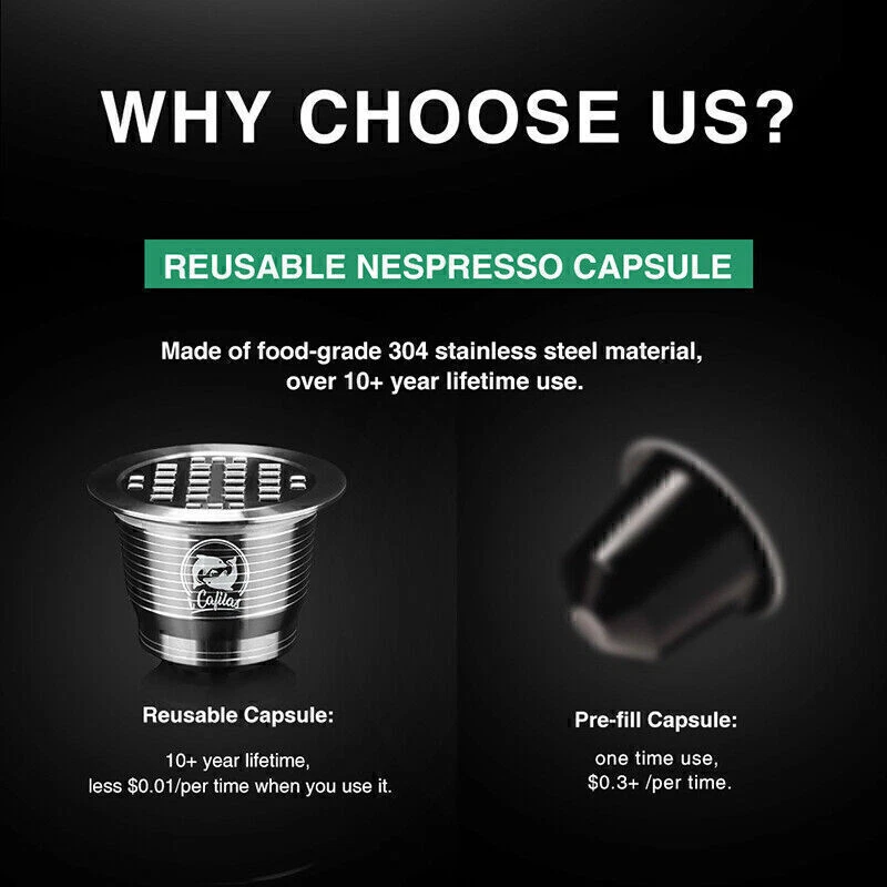 Product Description If you have any questions, please contact customer service first, do not open disputes easily, thank you! Features: 1. Material: food grade stainless steel 304 material + food grade silicone ring 2. Product size: The top diameter is about 36.7MM, the bottom diameter is about 23MM, and the height is about 26.9MM. 3. Capacity: 51-100ML 4. Product net weight: about 0.08KG/PCS 5. Product advantages: can be used multiple times. It is drop resistant, environmentally friendly, economical, and can be used with your favorite coffee powder for a rich taste. Use powder filler to save powder filling time and make coffee more convenient. Compatible coffee models: For Nespresso U, CitiZ (Not Fit for D110 and Prodigio Krups ), Pixie, Le Cube, Maestria, Lattissima, Inissia, Concept Not compatible with the following models: For Dolce Gusto Applicable places: office, home, bar, restaurant, car, outdoor, lounge, cafe. Package Contents: 1*Stainless steel coffee capsule Notes: 1. Due to the different manual measurement methods, please allow the size error to be 1~3cm. 2. Due to different lighting and screen settings, the color of the item may be slightly different from the picture. About Us We accept all payments authorized by eBay. powered by