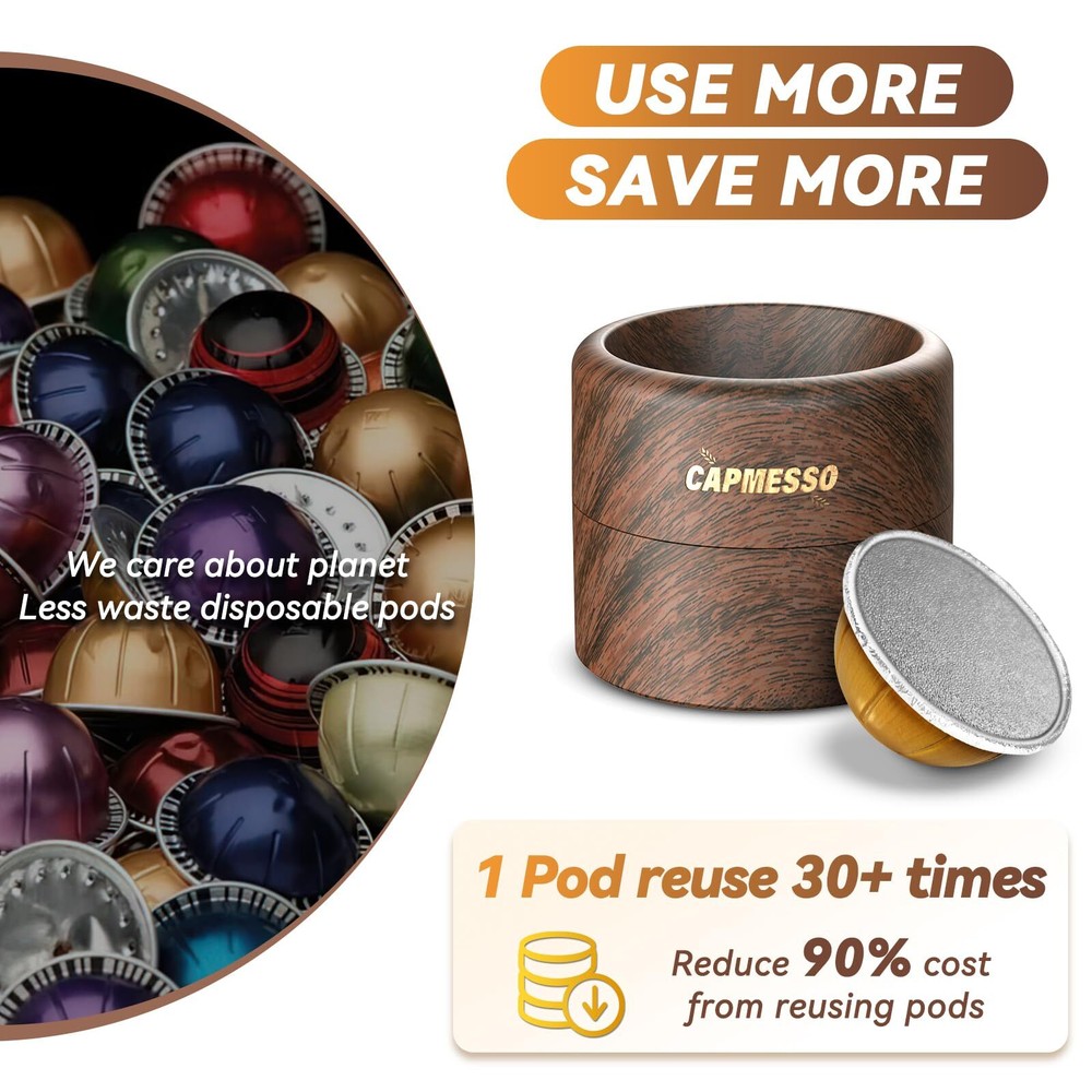Reusable Vertuo Pod Refill Kit for Nespresso: Reusable Vertuo Capsule for Nespresso/Coffee Pods Vertuoline with 100 Aluminum Foil Lids for Any Size of Vertuo Plus Espresso Pod- Wood Grain Holder ☕Ultimate Refill Kit for Reusable Nespresso Vertuo Pods: Experience unparalleled convenience with our all-in-one Nespresso pods vertuo refill kit, including 100 sturdy aluminum foil seals, a dual-ended brush for easy filling, and a seamless filling base. This innovative vertuo pod kit enhances refill efficiency by over 50%, saving you time, money, and reducing waste. Also, the plastic base paired with walnut wood grain adds elegance to your coffee bar (Pods not included) ☕Perfect Fit for All Vertuo Pods: Designed for compatibility with all size Nespresso Vertuo refillable pods (excluding bottom vertuo capsules) on all VertuoLine machine,including Vertuo,VertuoPlus, Vertuo Next and Vertuo Pop. Our nespresso accessories kit allows you to create reusable vertuo pods for nespresso in just 15 seconds, simplifying your coffee-making routine ☕The Newest Foil Lids for Maximum Freshness: Our upgraded aluminum lids covers are expertly embossed for strength, preventing tearing and leakage as others while ensuring an airtight seal. No mess and no harm to your expensive machine. Enjoy fresh, full-bodied espresso with a rich crema every time ☕Smart & Effortless Brewing Solution: Refilling your Nespresso refillable pods has never been easier. Just fill, seal, and press! Our vertuo refill kit prevents mess and ensures precise alignment of foil seals, without obstructing barcode recognition for optimal flavor extraction ☕Game-Changer for Coffee Lovers: Say goodbye to expensive single-use coffee capsules and hello to endless coffee possibilities! Reusing your nespreso vertuo pods not only saves you money but also helps the planet. With our vertuo pod refill kit, enjoy custom coffee flavors and make every cup special Shipping We offer FREE shipping on all orders! We ship within Three business days of payment, usually sooner. We use a selection of shipping services such as UPS, FedEx, USPS etc. We only ship to the lower 48 states, no APO/FPO addresses or PO Boxes allowed. Local pickups and combined shipping options are not provided at this time. Return You can return a product for up to 30 days from the date you purchased it ONLY if it's in the original condition. The product cannot be used or open. Any product you return must be in the exact same condition you received it and in the original packaging. Please keep the receipt. Feedback Customer satisfaction is very important to us. If you have any problem with your order, please contact us and we will do our best to make you satisfied. Contact Us If you have any queries, please contact us via ebay. We usually respond within 24 hours on weekdays. Please visit our eBay store to check out other items for sale! Thank you for shopping at our store.