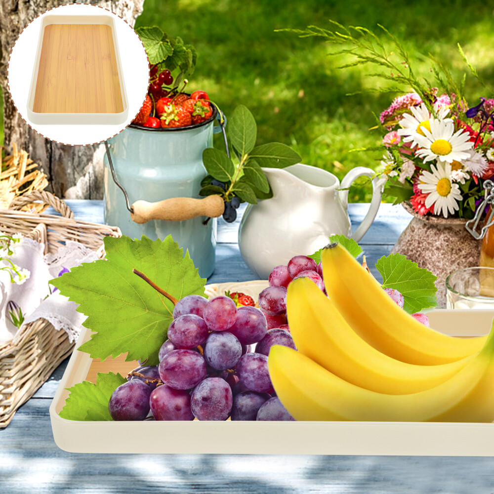 Reusable Wood Grain Plastic Snack Serving Tray for Fruits Nuts