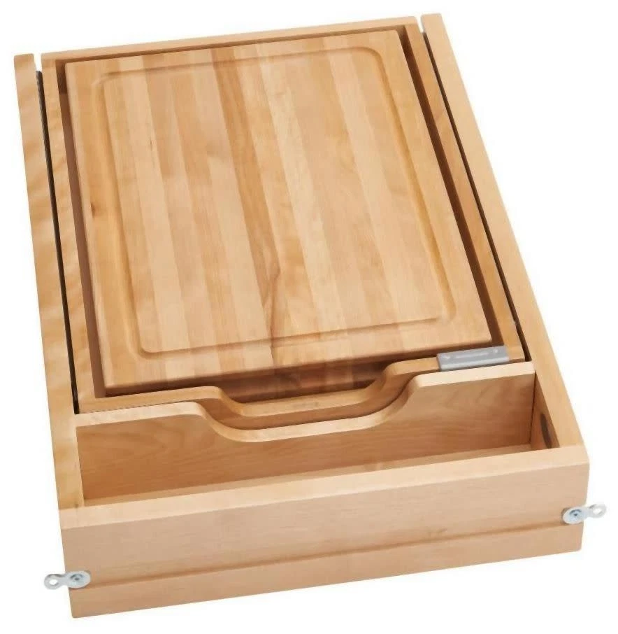 Powered by Frooition All Categories Rev-A-Shelf 4KCB-18HSC-1 Wood Classics 15" Two Tier Kitchen Knife Cutlery Organizer and Cutting Board Full Replacement Drawer System with Soft Close - Prep Station Overview Item Description If you want a professional kitchen with a prep station, then look no further than Rev-A-Shelf's combination knife holder and cutting board. The unique design has additional compartments for storing cutlery, utensils, and more. Available in varying sizes for multiple cabinet applications, this complete drawer has you covered from preparation to serving. Features: Undermount soft close full extension concealed slide system Cutting drawer slides back into cabinet for easy access to knives Pre-assembled drawer box replaces your existing drawer Simply add your own drawer front (not included) Cutting board removes for easy use and cleaning Designed for cabinet drawer opening width of 15" Adjustable door mount brackets are included and required for operation Fully assembled maple wood construction for durability Entire drawer fits into existing cabinet drawer space 90 lb full-extension BLUMOTION slides with soft-close Covered by Rev-A-Shelf's limited lifetime warranty Specifications: Depth: 21-3/4" Height: 4-3/8" Width: 15" Minimum Opening Width: 15" Minimum Opening Height: 4-1/2" Includes: One (1) wood drawer One (1) pair of Blum slides One (1) wood cutting board Why Choose BuildInc? OUR PROMISE TO YOU About Us At Build, we promise to provide the best selection we can, most competitive pricing, and unmatched customer service. Our store has quality home improvement products from trusted manufacturers like Moen, American Standard, Delta, Kraus, Kichler, Progress Lighting, Schlage, Kwikset, Baldwin, Broan, NuTone, Air King, and Rev-A-Shelf. With over 200,000 home improvement products for you to choose from, we have just what you need to get your project done. Fast & Free Shipping We promise to make it our priority to get you your items as fast as we can. We ship from 440 warehouses around the country, ensuring that your product will get to you as soon as possible. We know you're eager to get your hands on your new purchase, we would be too. As a bonus, most items ship for free. Returns We are happy to accept returns of unused or defective items for a refund within 30 days from the date of delivery. For returns outside 30 days, please contact our Customer Service team to go over our options. For full details, please view the Shipping and Payments tab above. To initiate a return simply go to the eBay Returns Portal and submit a return request. We ask that all items be returned with all original components via a traceable method. Once your return is received and processed, we will quickly get your refund or replacement issued. If for any reason you are unsatisfied with your purchase or for product or warranty questions, please contact Customer Service team for assistance. More Items! View more great items! About Us | Shipping | Returns | Contact Us | FAQ | Collections | Special Offers! Powered by Frooition Frooition Frooition | No-js Template | eBay design, eBay store design, eBay shop design, eBay template design, eBay listing design (ver:froo_no_js) This listing is currently undergoing maintenance, we apologize for any inconvenience caused.