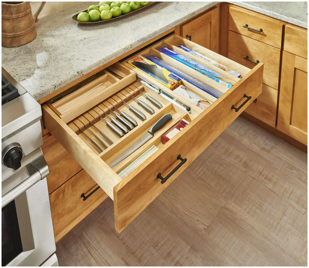 Powered by Frooition All Categories Rev-A-Shelf 4WTCD-36HSC-1 Wood Classics 33"W Base Cabinet Kitchen Two Tier Full Drawer Box Silverware / Utensil Organizer System with Soft Close Slides Overview Item Description Double up your drawer space with Rev-A-Shelf's two-tiered drawer system. This drawer box comes pre-assembled and ready to install into your existing cabinet drawer opening. Options exist to have slides included or you can supply your own. Features: Undermount soft close full extension concealed slide system For 1-1/2 inch face frame cabinet construction only Top-tier slides back inside of cabinet on ball-bearing drawer slides Pre-assembled drawer box replaces your existing drawer Simply add your own drawer front (not included) Designed for a cabinet drawer opening width of 33" Adjustable door mount brackets are included and required for operation Fully assembled maple wood construction for durability Entire drawer fits into existing cabinet drawer space Covered by Rev-A-Shelf's limited lifetime warranty Specifications: Depth: 22-1/4" Height: 4-7/16" Width: 33" Minimum Opening Width: 33" Minimum Opening Height: 4-1/2" Includes: One (1) wood two-tier drawer system One (1) pair of slides Mounting hardware Why Choose BuildInc? OUR PROMISE TO YOU About Us At Build, we promise to provide the best selection we can, most competitive pricing, and unmatched customer service. Our store has quality home improvement products from trusted manufacturers like Moen, American Standard, Delta, Kraus, Kichler, Progress Lighting, Schlage, Kwikset, Baldwin, Broan, NuTone, Air King, and Rev-A-Shelf. With over 200,000 home improvement products for you to choose from, we have just what you need to get your project done. Fast & Free Shipping We promise to make it our priority to get you your items as fast as we can. We ship from 440 warehouses around the country, ensuring that your product will get to you as soon as possible. We know you're eager to get your hands on your new purchase, we would be too. As a bonus, most items ship for free. Returns We are happy to accept returns of unused or defective items for a refund within 30 days from the date of delivery. For returns outside 30 days, please contact our Customer Service team to go over our options. For full details, please view the Shipping and Payments tab above. To initiate a return simply go to the eBay Returns Portal and submit a return request. We ask that all items be returned with all original components via a traceable method. Once your return is received and processed, we will quickly get your refund or replacement issued. If for any reason you are unsatisfied with your purchase or for product or warranty questions, please contact Customer Service team for assistance. More Items! View more great items! About Us | Shipping | Returns | Contact Us | FAQ | Collections | Special Offers! Powered by Frooition Frooition Frooition | No-js Template | eBay design, eBay store design, eBay shop design, eBay template design, eBay listing design (ver:froo_no_js) This listing is currently undergoing maintenance, we apologize for any inconvenience caused.
