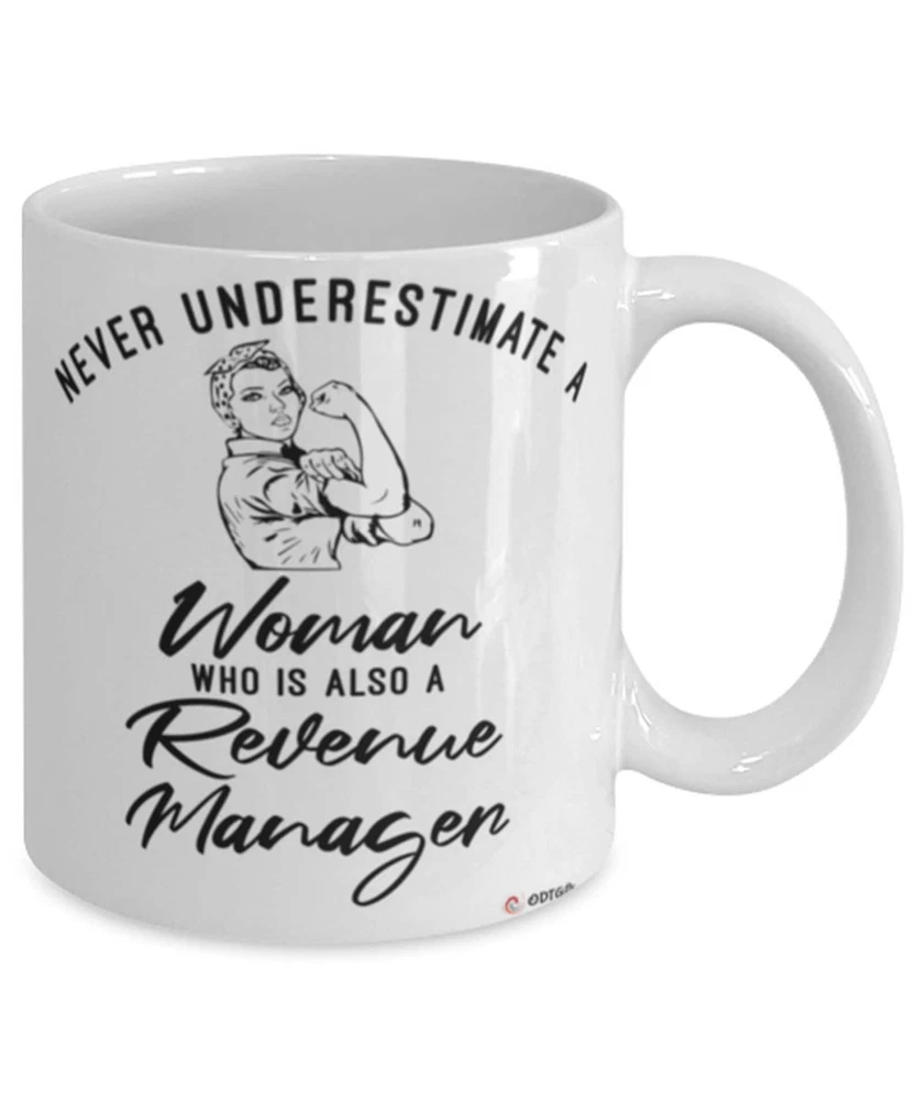 Revenue Manager Mug Never Underestimate A Woman Who Is Also A Revenue Manager Coffee Cup White Product Details.. This high quality 11oz. ceramic white mug has a premium hard coat that provides crisp and vibrant color reproduction sure to last for years. Perfect for all hot & cold beverages. The highest quality printing possible is used. It will never fade no matter how many times you wash it. Material: 100% Ceramic. Print both sides. Dishwasher and Microwave Safe. High Gloss + Premium White Finish. Printed in the U.S.A. Personalized & Custom. We support personalized and custom mug to add custom, when placing an order, you can add notes to the "order note" in shipping address section. Also you can contact us directly via message. Shipping Info. Ready to ship in 1 to 2 business days, All products are made-to-order and proudly printed in the United States. Shipped by USPS and DHL, You will receive your order in 5-7 days. Replace & Refund. All products are defective during shipping broken, chipped will be replaced free of charge. You are not satisfied with the product, we will refund 100% money to you. If any other issues arise, please do not hesitate to message, we would be more than happy to assist you.