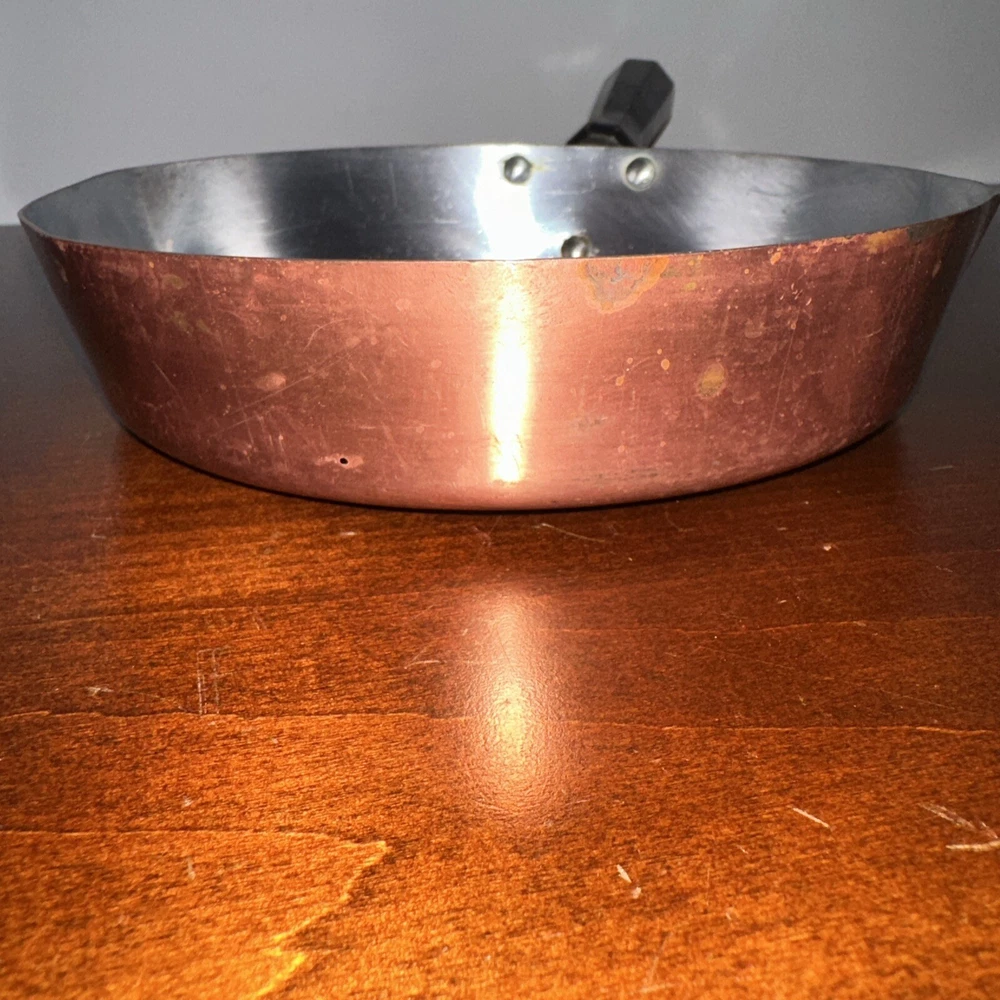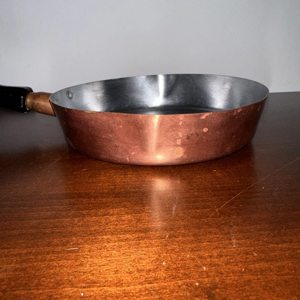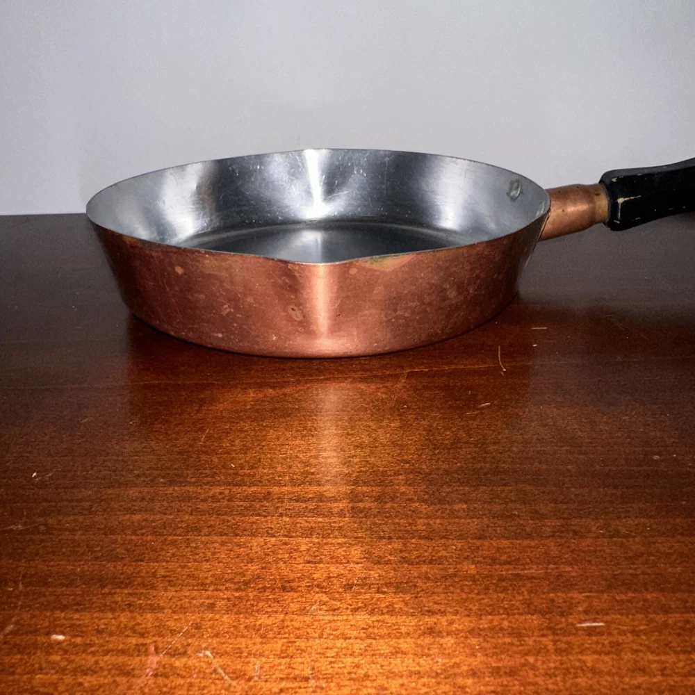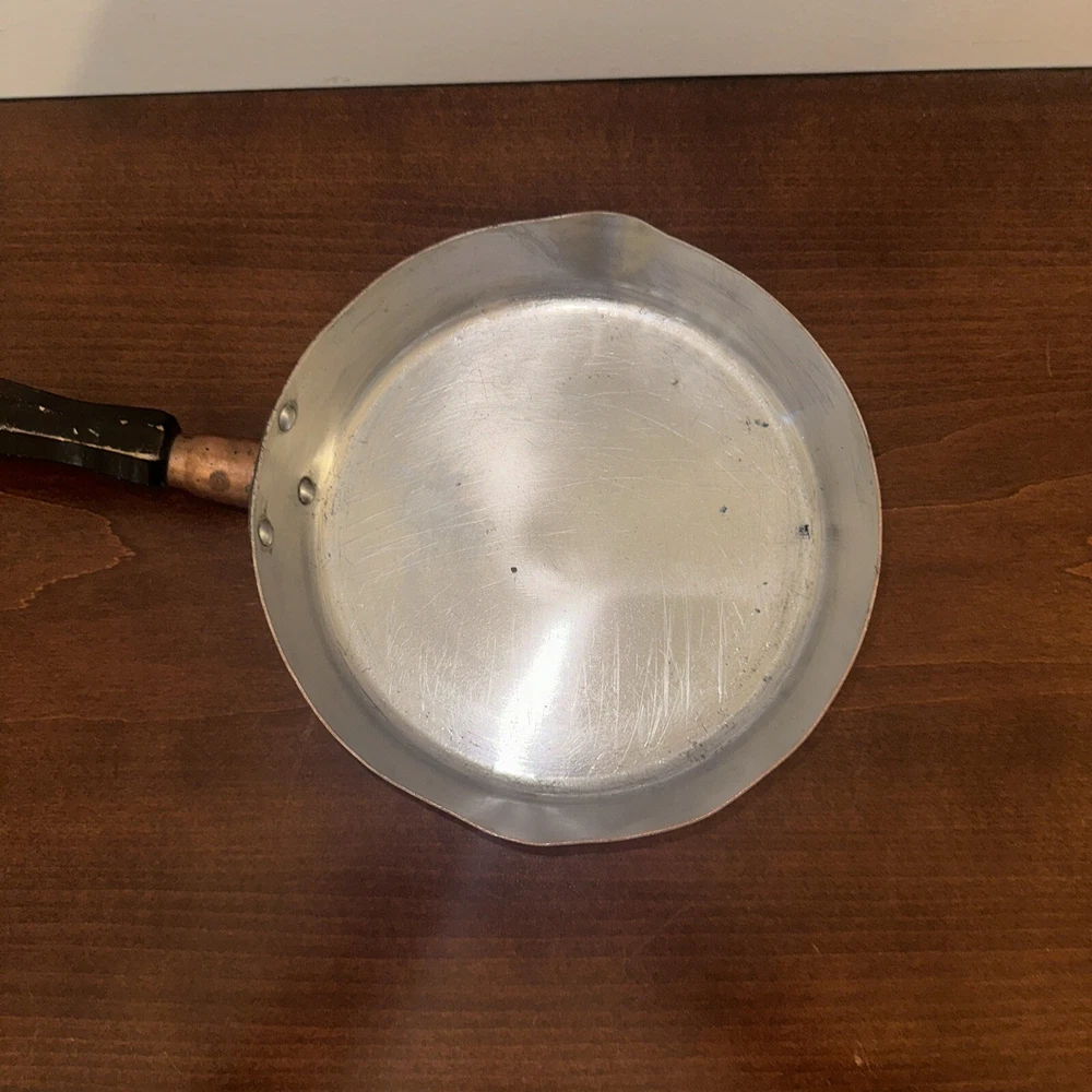 Crafted for both electric and gas stovetops, this versatile 7" skillet from Revere Ware boasts a durable stainless steel construction with a copper-clad bottom, ensuring even heat distribution for your cooking needs. The skillet's round shape and silver color offer a classic look that complements any kitchen decor, while its robust build quality hints at the enduring charm of vintage Revere Ware collectibles. Proudly made in the United States, this piece is a testament to the craftsmanship of past kitchenware eras. It comes without a lid, allowing for easy cooking and quick cleanup. Note that this particular item is not a modified version and retains the integrity of its original design, perfect for both collectors and home chefs who appreciate the blend of functionality and nostalgia.