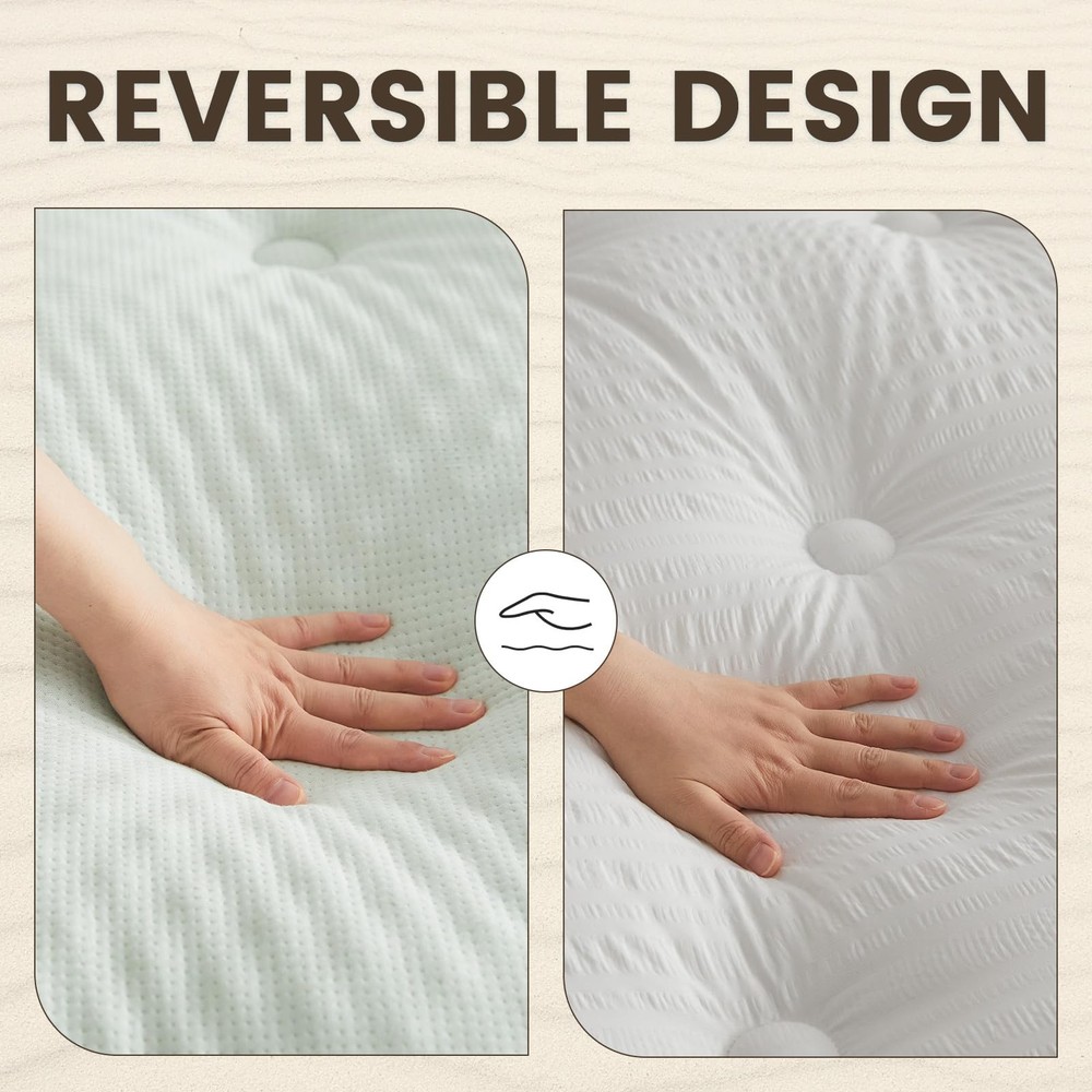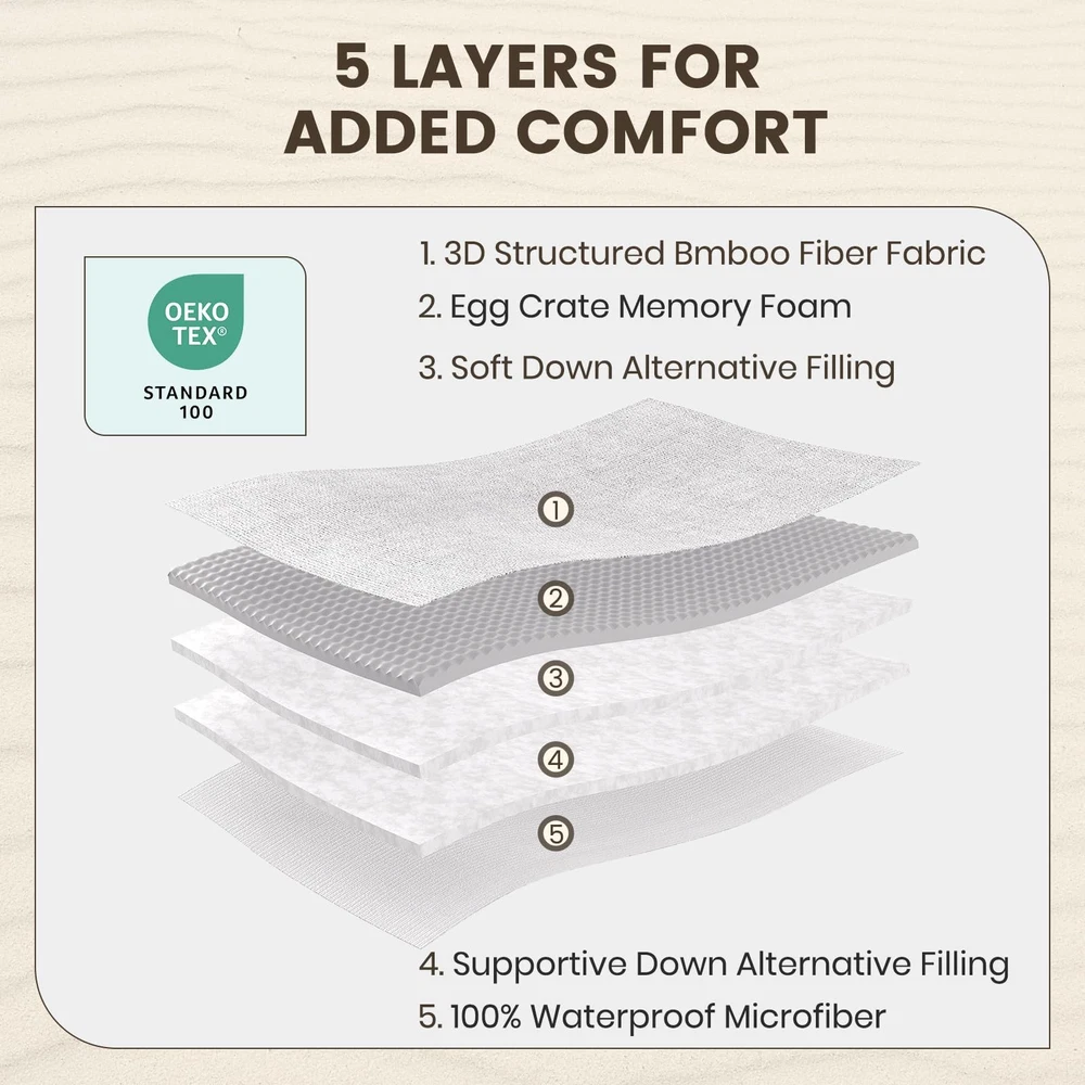 memory foam king mattress pad 【Reversible Design for Best Value】The front surface of the memory foam queen mattress pad are made from viscose from bamboo fabric, featuring softness and breathability that helps balance your body temperature and keep you at maximum comfort as you sleep. You will be smitten with the gorgeous quality of this mattress topper queen. 【Reversible Design for Best Value】The reverse side surface of the waterproof mattress pad queen is powered by Nanotex technology, which makes the reverse surface waterproof, spill & stain resistant, and recyclable, but still it is of great breathability. Reversible design doubles the lifespan & value of the mattress cover queen size. 【5 Layers for Best Support & Comfort】The mattress pad queen size is a great combination of viscose made from bamboo fabric top, egg crate memory foam layer, 2 down alternative fillings layer, and waterproof microfiber layer. Ergonomically designed memory foam mattress topper contours your body and provides maximum support. Cooling from the viscose made from bamboo fabric works well with the warmth-keeping memory foam, to keep your body in the optimum temperature all night long. 【Deep Pocket & Easy Care】360° Fully elastic skirt for fitted sheet style fits your mattress up to 21 inch deep, so that your queen mattress topper always stays where you want it to be. Machine Wash or Address visible spots using mild spotting agents on the impacted areas. 【Memory Foam Mattress Pad for Everyone】This mattress cover is ethically sourced and certified by OEKO-TEX. Available in 10 sizes (Twin 39"x75 ", Twin XL 39"x80", Sofa Full 54"x72", Full 54"x75", Sofa Queen 60"x72", Short Queen 60"x75", Queen 60"x80", RV King 72"x80", King 78"x80", Cal King 72"x84"). Let the queen mattress pad air out for at least 24 hours before it puffs up.