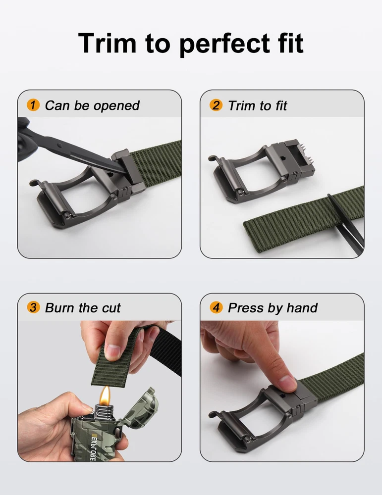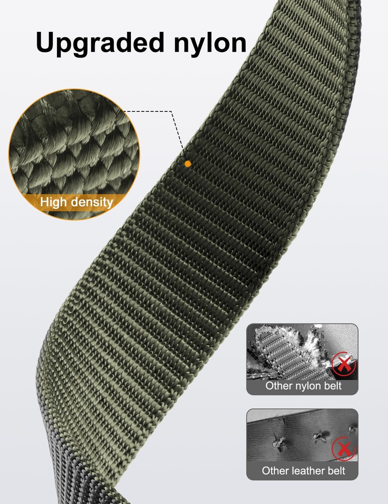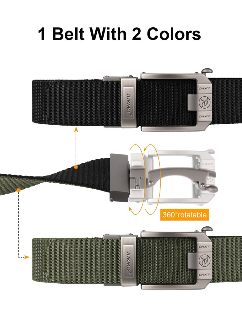 ROTATABLE RATCHET BUCKLE WITH REVERSIBLE STRAP – colors on sides in belt can be matched variety of outfits, which not only help you save money, but is also very convenient for long travelling. ADJUST AT WILL – Combined with automatic slide ratchet buckle, the unique design of unlimited slots on the nylon webbing belt can help you expediently and precisely adjust your belt to the perfect fit. THICKENED NYLON STRAP – Our durable nylon straps are 1.5 times thicker than normal straps, which has very strong load-bearing capacity. We can make sure it won't twist when you carry a lot of equipment. FOR SPECIAL YOU – Our durable belt is perfect for daily life. For Tactical, strong load-bearing and stay tight; For Casual, match casually and comfortable; For Youth, simple and convenient; For Business, fashion and personality; For Elder, convenient and comfortable. SHOPPING – If you meet any problems after purchasing the belt, it is free to return or replace. If it past the return time, please don't hesitate to us by message. We promise to provide you 100% satisfying .