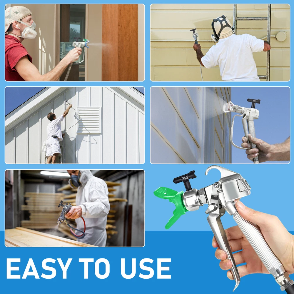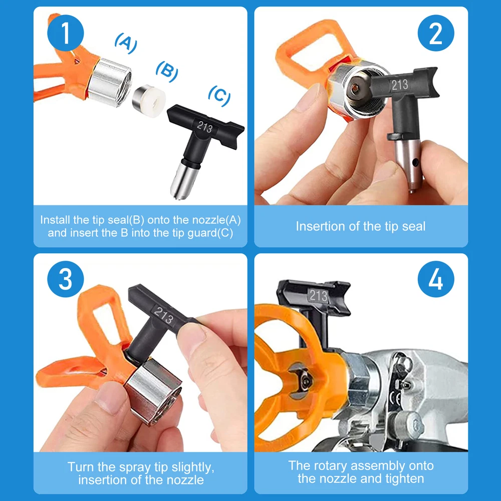 Product Description Characteristics: - [Wide compatibility] Available in 211 313 415 517 623 213 315 417 519 621 109 413, airless sprayer nozzles compatible with most airless sprayers; The spray range will vary depending on the size of the aperture and is perfectly suited to your daily use and replacement needs - [Quality material] Double-sided airless nozzle made of tungsten steel, strong and wear-resistant, easy to clean, long service life - [Easy installation] No installation tools, just a few steps to install the airless nozzle on the sprayer; First use the nozzle to seal the nozzle in the protection seat, and then insert the nozzle into the protection seat to rotate to complete the installation, saving time and effort for your project - [Feature HEA Technology] Nozzles reduce overspraying by up to 55% while providing softer spraying, improved control, and a more consistent finish. Save more paint. Suitable for paint, furniture, fence, home decoration, industrial fine drawing decoration, etc -【 Practical design 】 Airless sprayer nozzle has reverse airless cleaning switch nozzle design, spray can be quickly cleaned in reversible position, prevent nozzle clogging, practical and effective for your work Specifications: - Material: stainless steel + tungsten steel - Color: Black/blue/yellow - Model compatibility: 211 313 415 517 623 213 315 417 519 621 109 413 Package materials include: -1* Nozzle