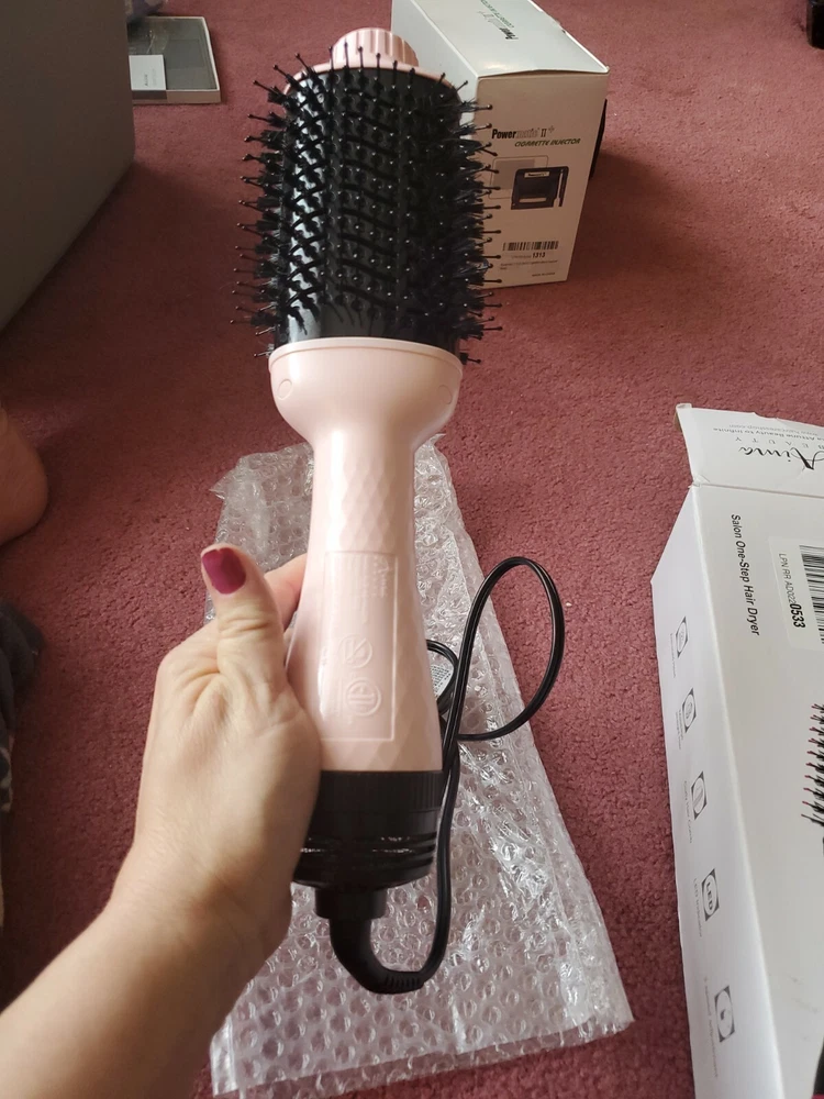 Number of Speeds:3Barrel Size:2.5 inFeatures:Adjustable Heat Settings, Cool Tip, Dual Voltage, Ionic TechnologyBrand:RevlonNumber of Temperature Settings:3Model:hair dryer brushPower Source:ElectricType:Brush DryerDepartment:WomenColor:BlackPower:1000 W