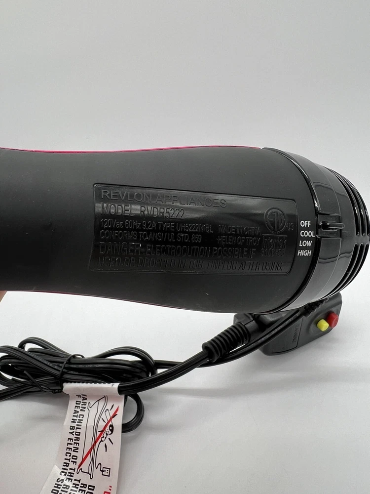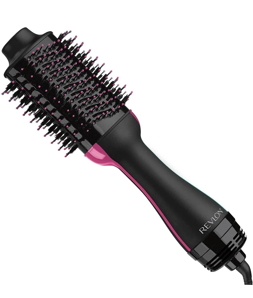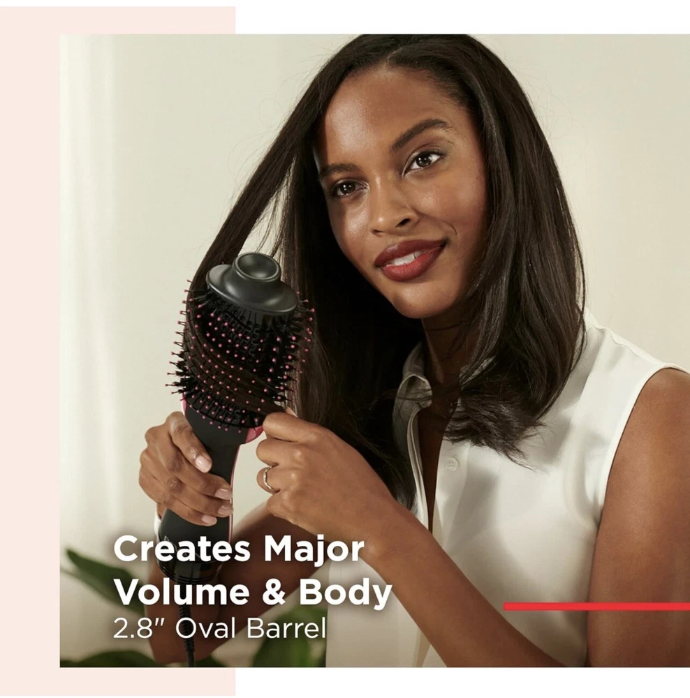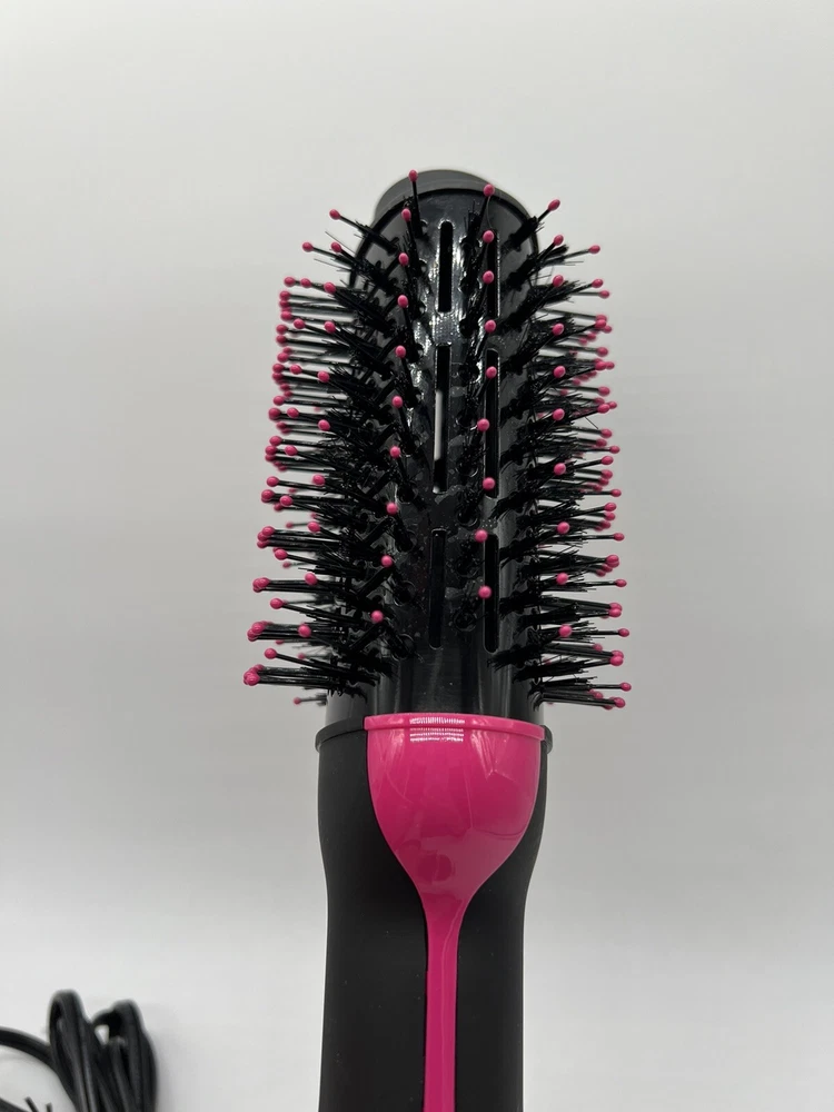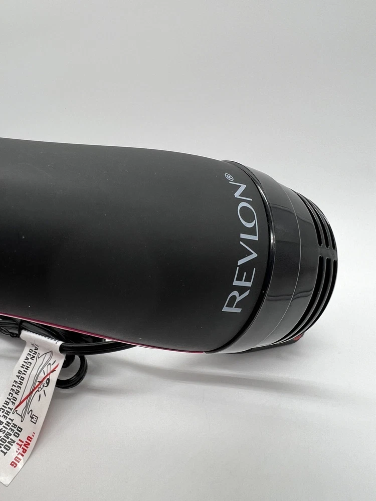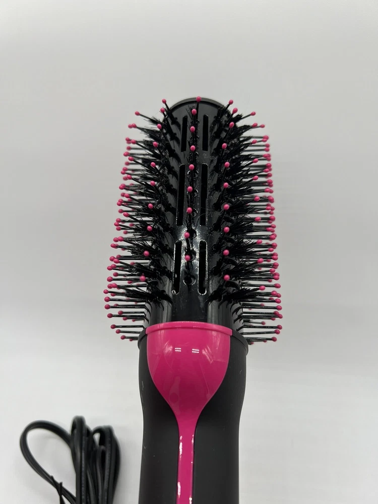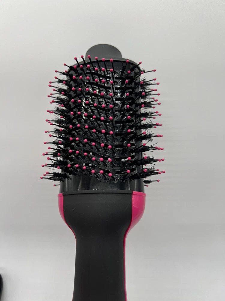 Revlon One-Step Hair Dryer Brush and Volumizer Oval Pink Black. Used, tested it works, still in good condition. Item: P4(17) VOTED “BEST BLOW-DRY BRUSH”: Simplify your getting-ready routine with this fan favorite. TWO-IN-ONE TOOL: Dry and style in up to half the time* and get that just-left-the-salon feeling without leaving home. 2.8” BRUSH: Styles all hair types and lengths, its wide surface area is great for long hair. SALON-STYLE BLOWOUTS: Get shine, tons of volume and a smooth finish, plus create soft waves and body. THREE HEAT/SPEED SETTINGS: Choose from cool, low or high to dry and style with up to 50% less heat exposure for less damage.