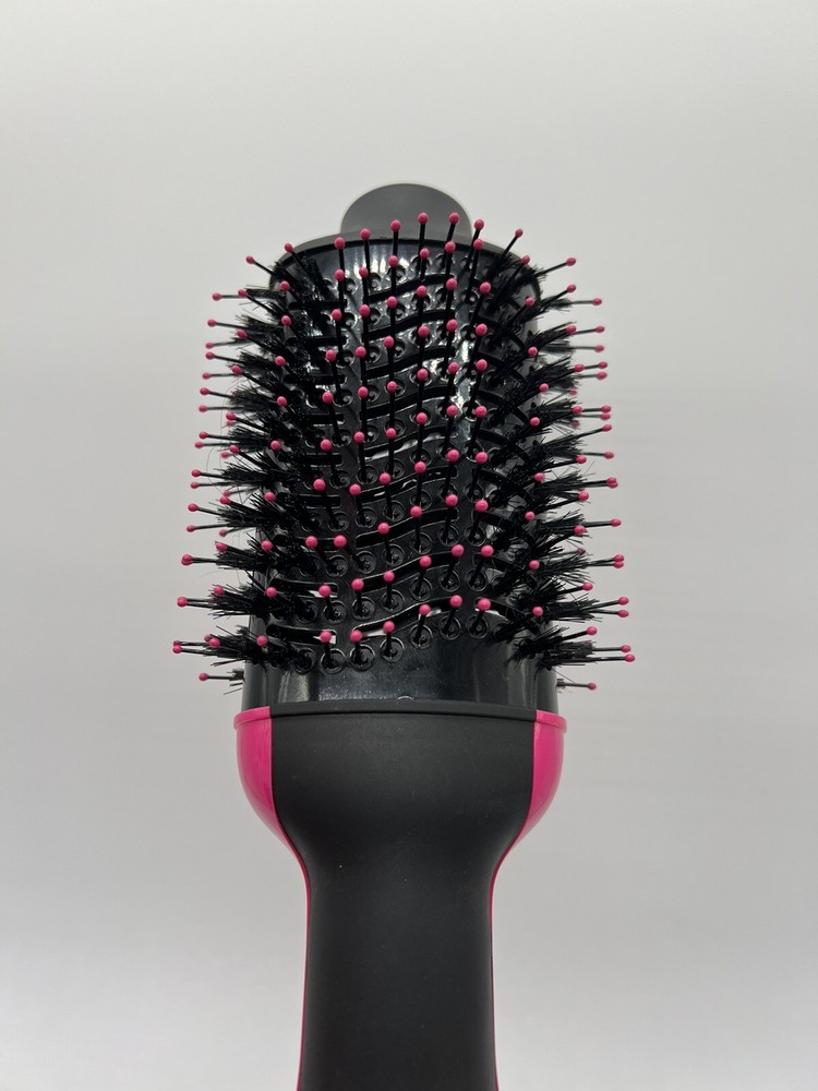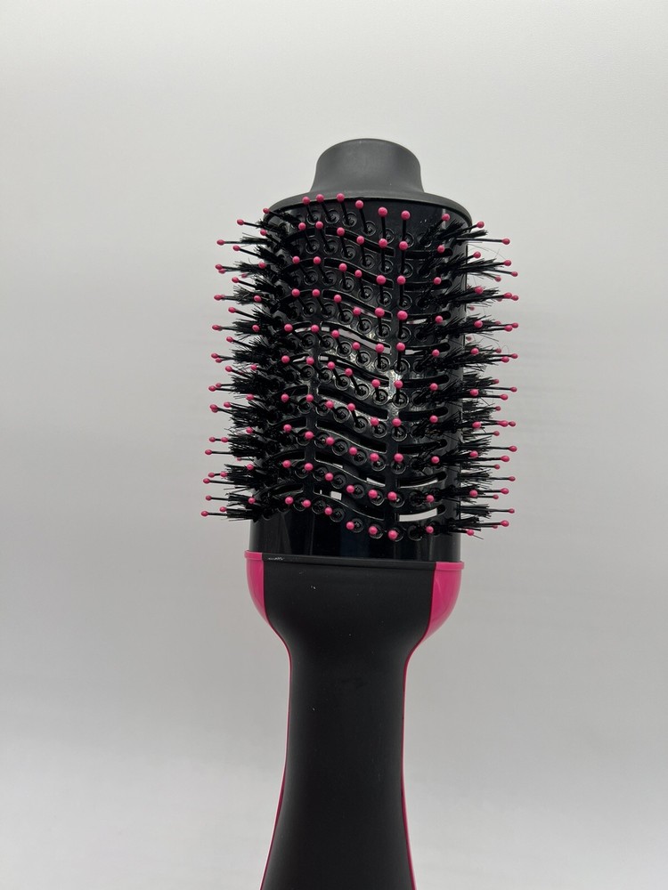 Revlon One-Step Hair Dryer Brush and Volumizer Oval Pink Black. Used, tested it works, still in good condition. Item: P4(16) VOTED “BEST BLOW-DRY BRUSH”: Simplify your getting-ready routine with this fan favorite. TWO-IN-ONE TOOL: Dry and style in up to half the time* and get that just-left-the-salon feeling without leaving home. 2.8” BRUSH: Styles all hair types and lengths, its wide surface area is great for long hair. SALON-STYLE BLOWOUTS: Get shine, tons of volume and a smooth finish, plus create soft waves and body. THREE HEAT/SPEED SETTINGS: Choose from cool, low or high to dry and style with up to 50% less heat exposure for less damage.