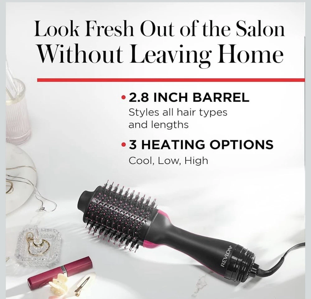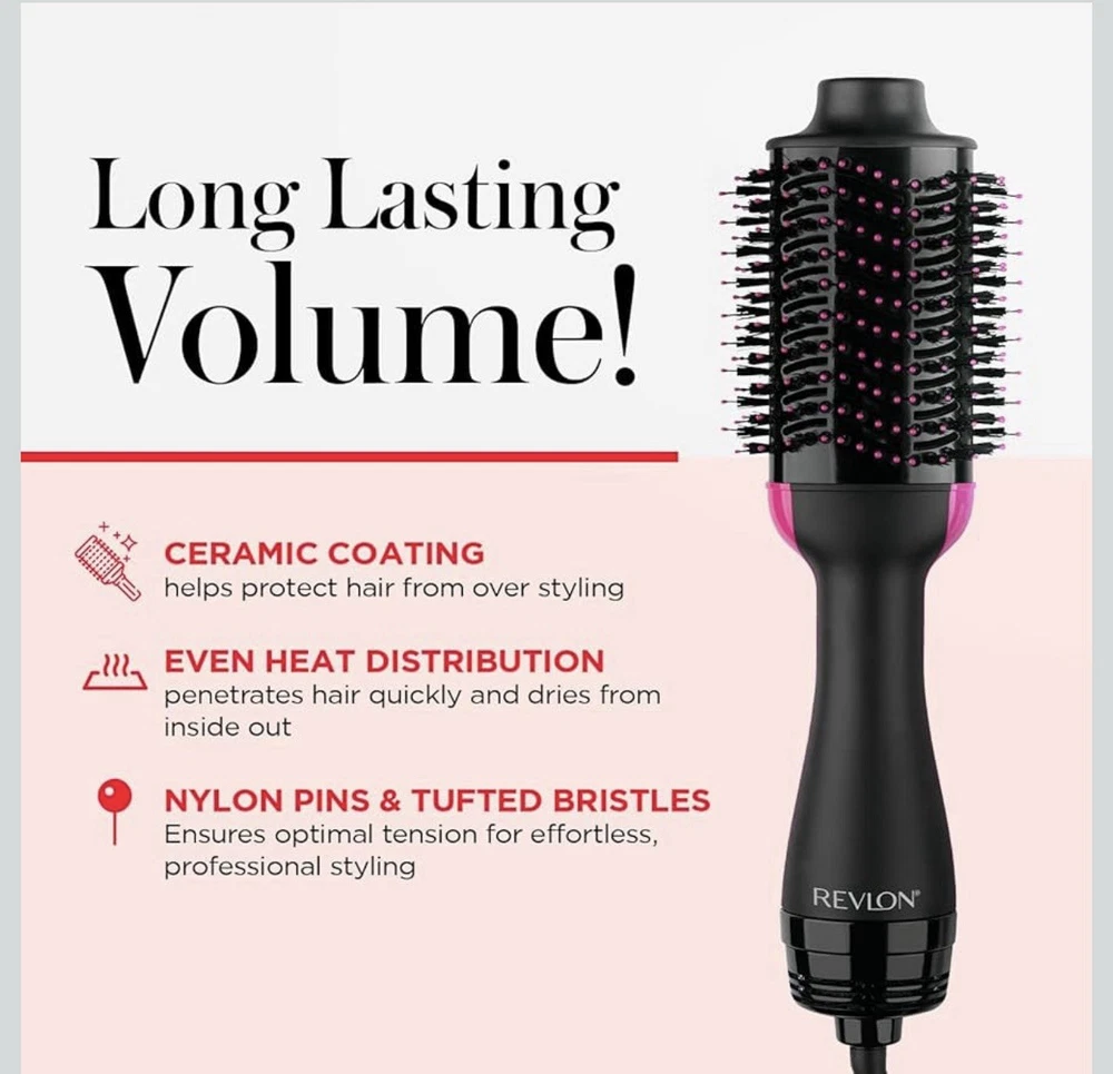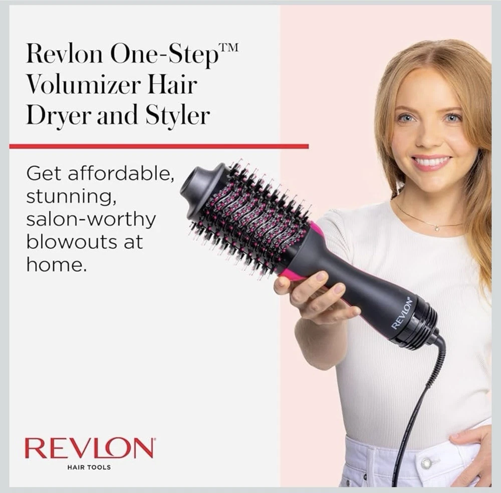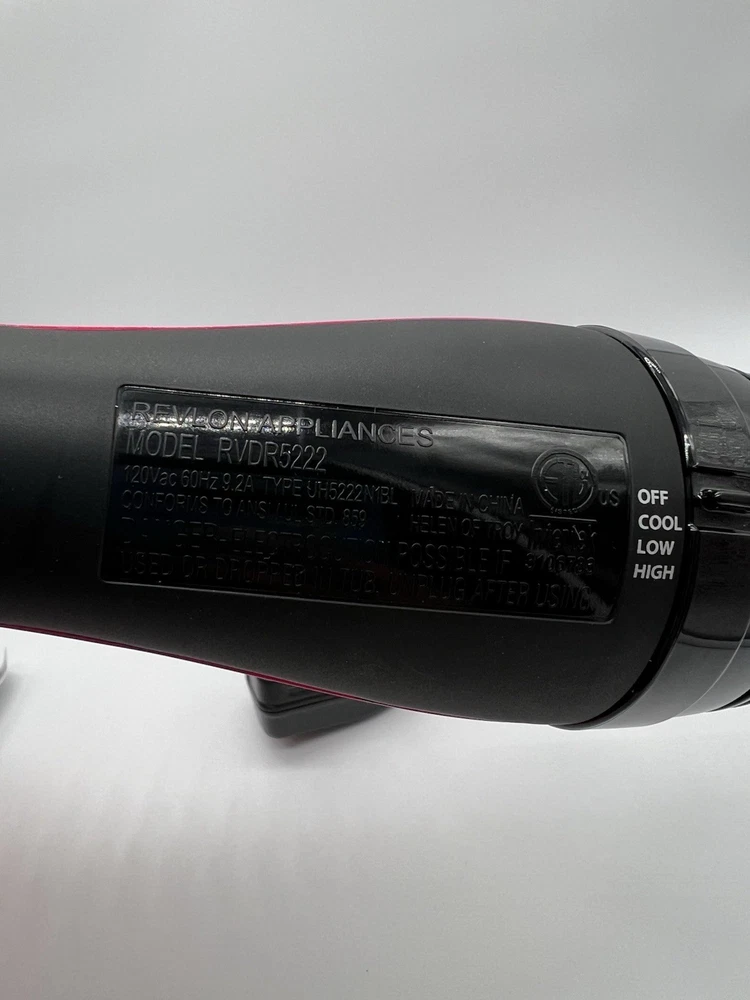 Revlon One-Step Hair Dryer Volumizer Hot Air Brush Black RVDR5222 Item: Q8(12) Used, tested it works. Salon-Quality Blowouts at Home - With REVLON One-Step Volumizer Hair Dryer and Styler, get salon-like hair in up to half the time and enjoy 22% more shine, 30% less frizz, and less chance of damage. Get ready for volume and waves in just one easy step! Style Easier and Smarter -This fan-favorite thermal brush is the new go-to hair styling product for lifted roots and soft waves. Thanks to the ceramic coating and ionic technology, your hair will look sleek, smooth, and shiny! Simplified But Versatile - Let the Revlon Hair Dryer Brush unlock flexible styling possibilities with the cool, low, and high heat settings. Damp to dazzling has never been easier, just hold the volumizer for 2-3 seconds for extra lift at the roots! Your Shortcut To Fabulous Hair - The Revlon Volumizer has a 2.8” oval blow dryer hair brush with nylon pins and natural bristles. It smooths, lifts, and curls like a pro for volume, bounce, and shine. Great for all hair types and best with mid-long hair! All Your Styling Needs in One-Step - Dry and style like a pro in one easy step! Revlon’s One-Step Hair Styling Collection transforms damp, dull hair into sleek perfection. Say goodbye to hassle and hello to confidence with effortless, stunning results.