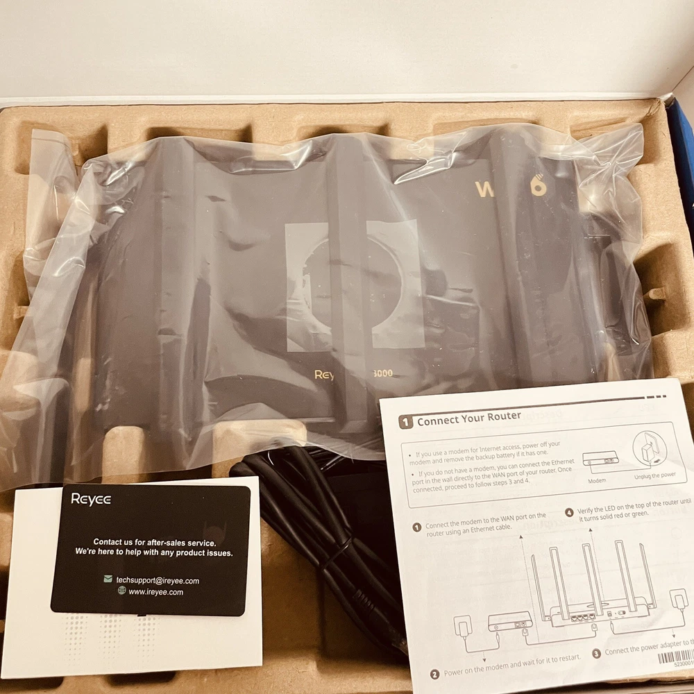 Connectivity:Wireless, Wireless (Wi-Fi), EthernetModel:AX3000Brand:ReyeeNumber of LAN Ports:2Color:BlackMPN:AX3000Frequency Band Class:Dual-BandType:RouterFrequency:160 MHzRecommended Uses For Product:Home, GamingData Transfer Rate:3000 Mb per secondFeatures:Beamforming, Dual-Band, Access Point Mode, Guest Mode, WPS
