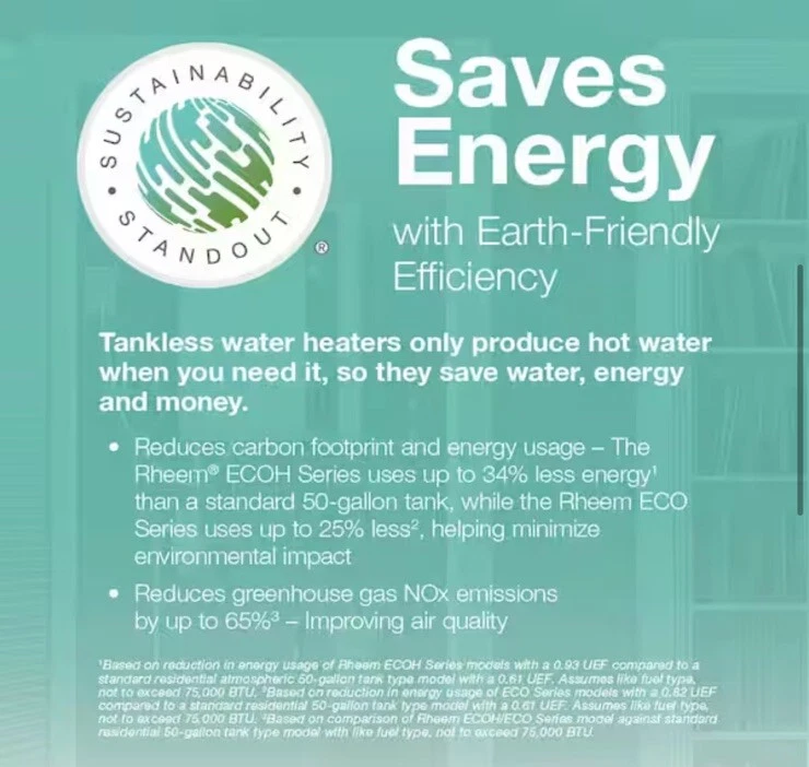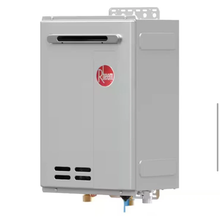 The Rheem ECO200XELP-3 Performance Plus High Efficiency Outdoor Liquid Propane Tankless Water Heater can provide up to 9.5 GPM at a 35° temperature rise. The 199,900 BTU High Efficiency Liquid Propane Tankless Water Heater is designed to supply continuous, on demand hot water for up to 3 bathrooms at the same time. It heats water only when it's needed and has a 0.82 uniform energy factor. Plus, it's smart: built-in Wi-Fi Technology provides valuable alerts and control from anywhere with a smart phone. This compact water heater may be eligible for local utility rebate programs. This model's outdoor design requires no additional venting and features freeze protection to -30°F. Please the specifications to view the Rheem Brochure Guide which will help you in your buying decision to ensure that you purchase the right tankless hot water heater model for your household needs. Continuous hot water: Rheem performance plus tankless water heaters heat water when you need it, for as long as you need it Outdoor model: outdoor tankless gas water heaters require no additional venting Saves water: save up to 1,100 Gal. of water per year with our exclusive water savings setting Saves energy: tankless water heaters heat water only when you need it which saves on energy costs, this model is up to 34% more efficient than a standard 50 Gal. gas tank water heater (based on comparison of Rheem RTG-series models against a standard residential 50 Gal. tank model with like fuel type; LP models may be higher) 9.5 GPM (Gallons Per Minute) can provide enough hot water to supply up to 3 bathrooms at the same time (at a 35° temperature rise) Smart: built-in Wi-Fi technology provides valuable alerts and control, like temperature settings, from anywhere with a smart phone (Rheem econet app required) Easy to own: our maintenance notice setting alerts you with a flashing warning code when it is time to call for a regular service check and our hard water build-up indicator automatically displays a service alert if scale build-up is detected Warranty: 15-year heat exchanger, 5-year parts and 1-year labor warranty (registration required; see warranty for details) Installs outside for easy replacement of your existing outdoor unit and frees up space inside Environmentally friendly ultra-low NOx burner meets SCAQMD rule 1146.2 requirements Hot start programming helps to minimize fluctuation in water temperature during periods of frequent on/off operation High-altitude capability up to 7,800 ft. elevation above sea level Electricity required: supplied with a 120-Volt power cord Return Policy California residents see Prop 65 WARNINGS Product Information Internet # 325309446 Model # ECO200XELP-3 Store SKU # 1009624834 E-14