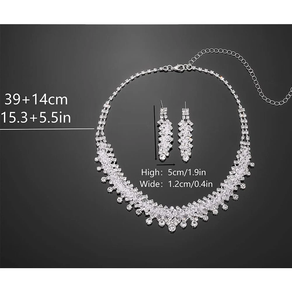 Rhinestone Crystal Necklace and Earrings Set Silver Prom Jewelry for Women