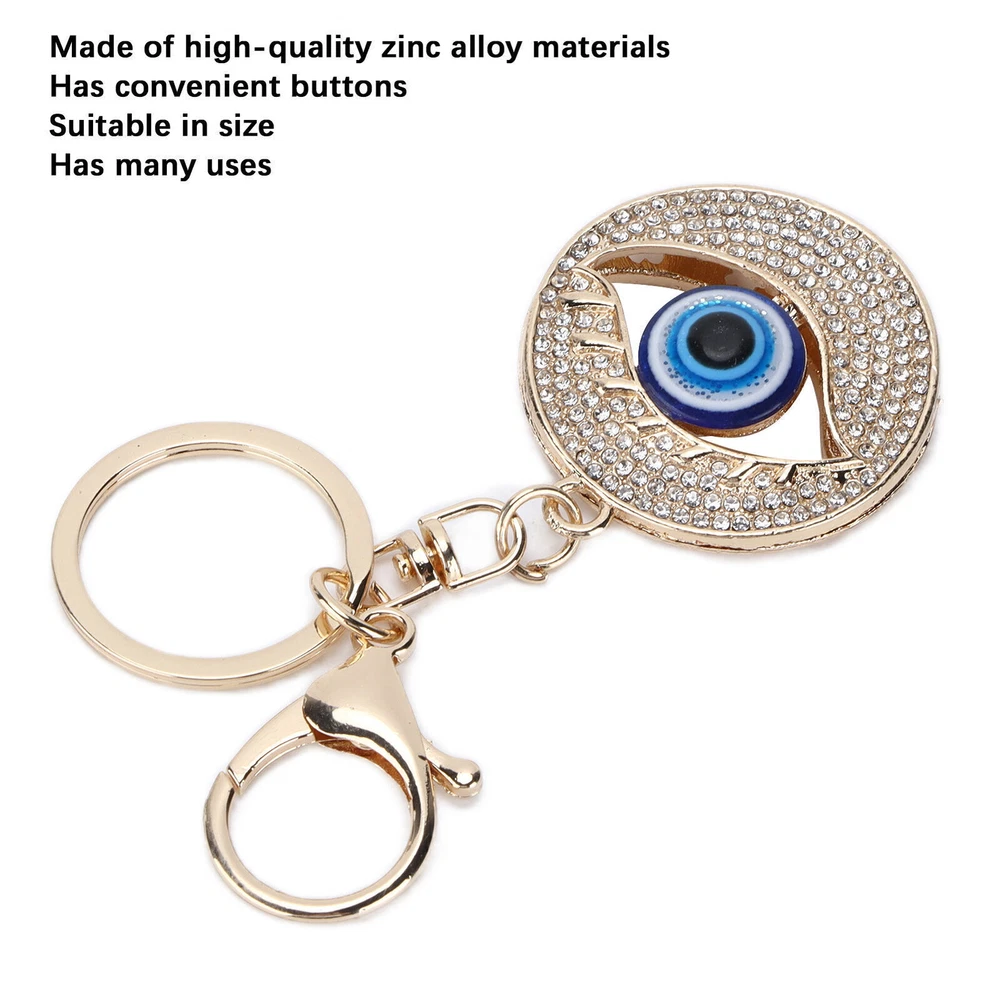 Feature: 1. Made of high‑quality zinc alloy materials, and the keychain is fashionable and will not change color or deform. 2. The type of rhinestone keychain is very strong, durable, not easy to break, more safe and to use. 3. Suitable in size, has convenient buttons, and can be used as a keychain, handbag hook or wall hanging accessory. 4. Good quality technology is used for the rhinestone keychain, which makes the design more exquisite. 5. Has many uses, can be used for wall decoration, amulet, outdoor and indoor decoration, office decoration, home decoration. Specification: Item Type: Rhinestone Keychain Main Material: Zinc Alloy Specification: 1pc Features: Blue Eyes Are the Amulet of the Turks, Used to Attract the Attention of Evil Gods and Avoid Bad Luck. Turks’ Admiration for Blue Eyes Stems from Their Belief in the "Evil Eye" Peeking. Those Evil Eyes in the Dark Will Bring Bad Luck to People, and the Eye of Medusa Will Resist and Reflect the Evil Eye's Intrusion Package List: 1 x Rhinestone Keychain