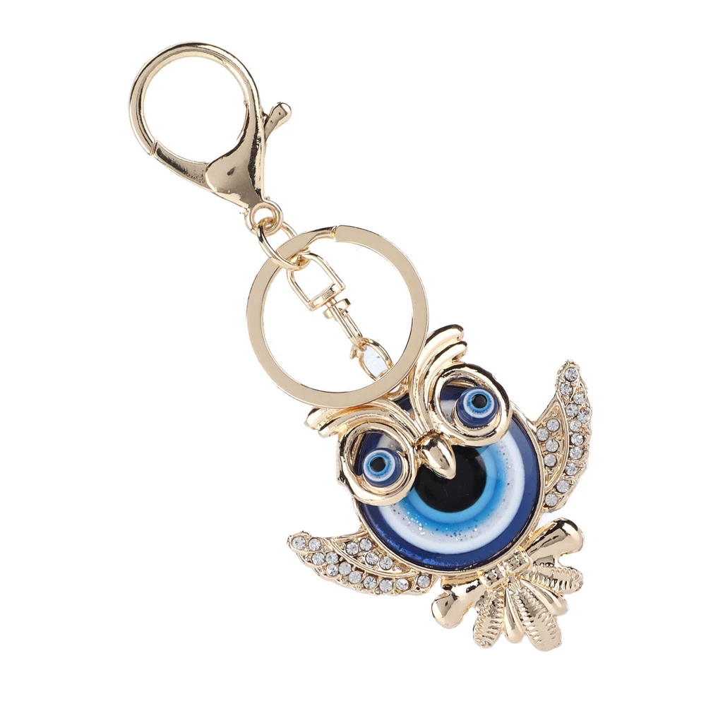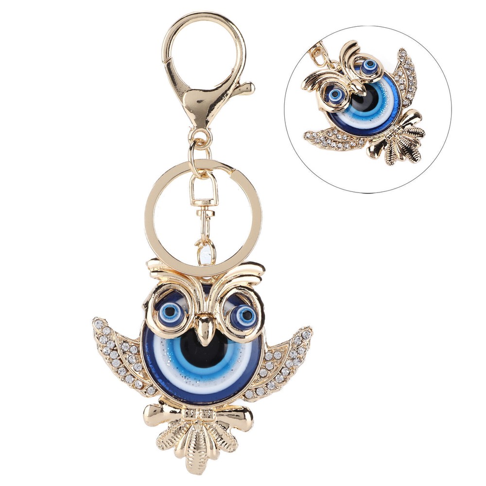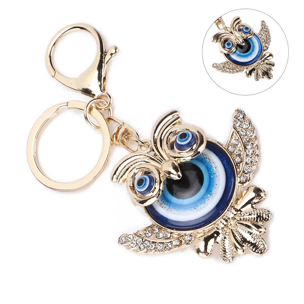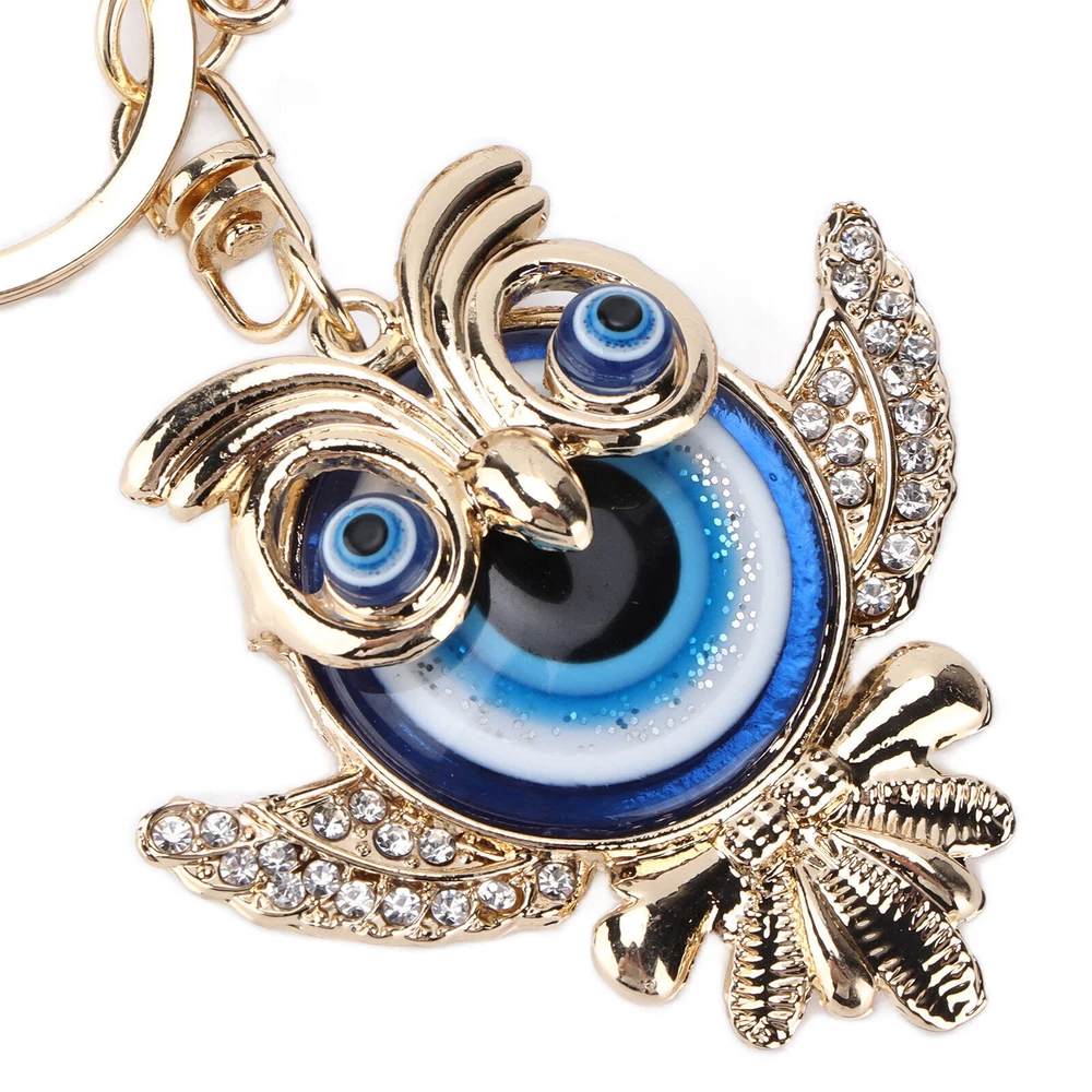 Rhinestone Keychain with Blue Turkish Evil Eye Charm for Bags and Purses