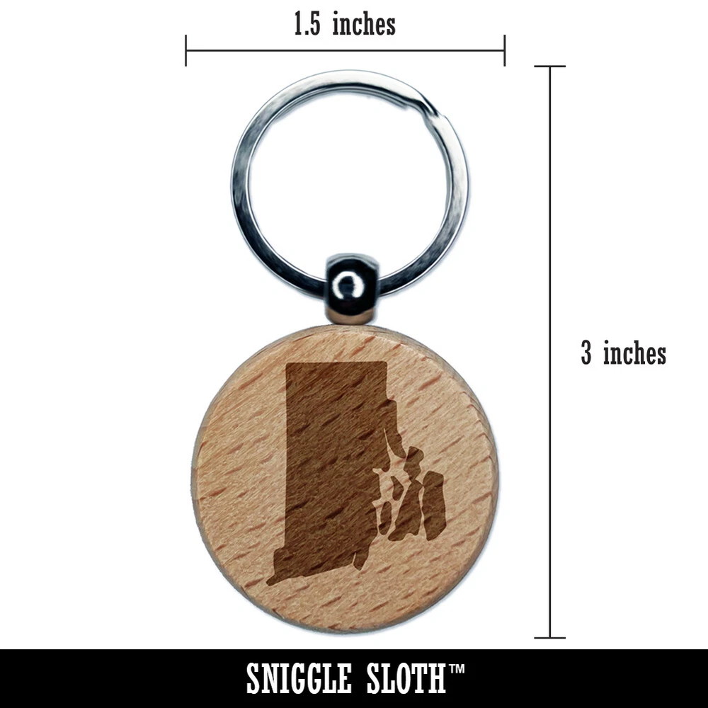 Rhode Island State Silhouette Engraved Wood Round Keychain Tag Charm
