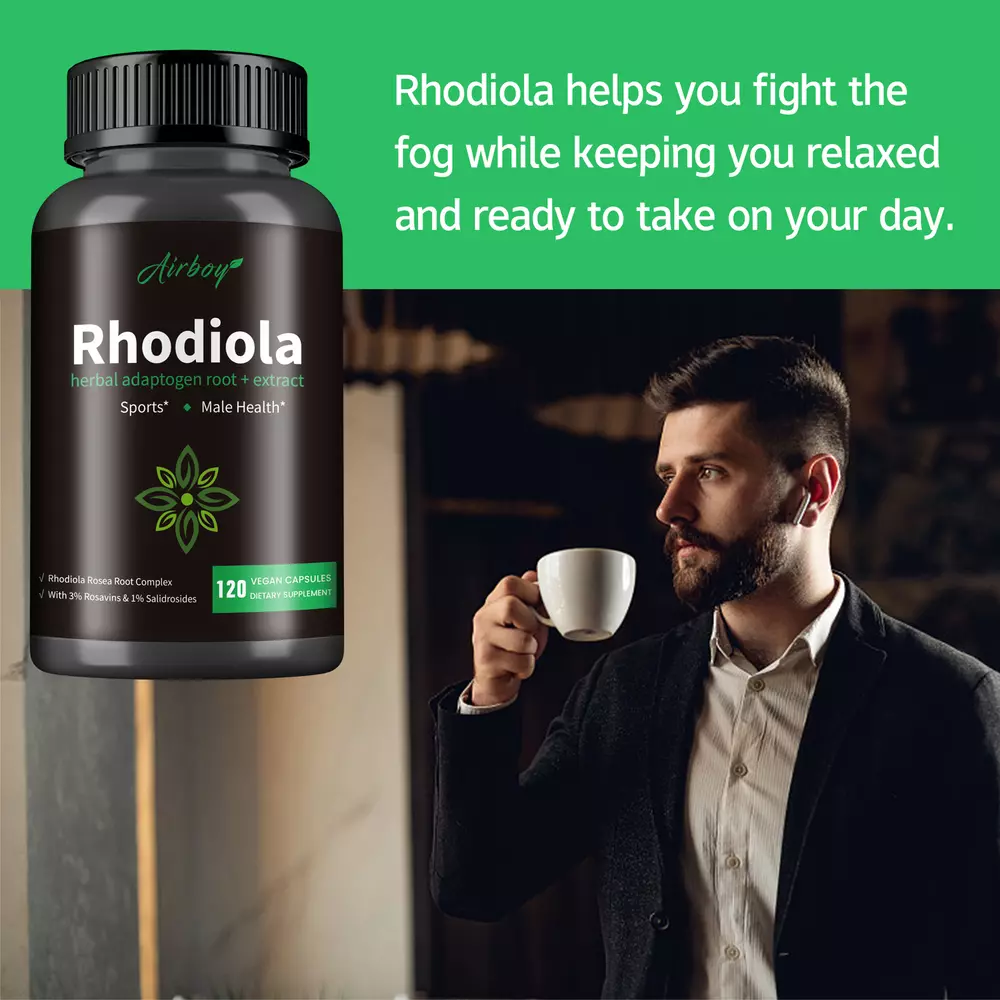 Effects: Energy & Endurance, Men's Health, Testosterone Booster Ingredients: Rhodiala Root Directions: Take 2 capsules once daily after a meal. Shipping: Ships within 48 hours on working days. Shelf life: 2 years Description: Relieve Stress and Boost Your Mood - Are you feeling brain fog, stressed, or exhausted? Rhodiola helps you fight the fog while leaving you relaxed and ready to take on your day. Whether you're having a busy day at the office, classroom, or home, Rhodiola can relax your mind while improving your focus, clarity, and mood. Boost Energy and Endurance - Looking for a clean boost of energy and mood? Our pure Rhodiola helps you stay focused and alert throughout the day so you can stay motivated, excel, and win the day. Rhodiola boosts immune support and defenses, stabilizing and maintaining your body and overall health to help you live a balanced, healthy life. Vegetarian & Non-GMO - Rhodiola is vegan, non-GMO, and gluten-free. Document