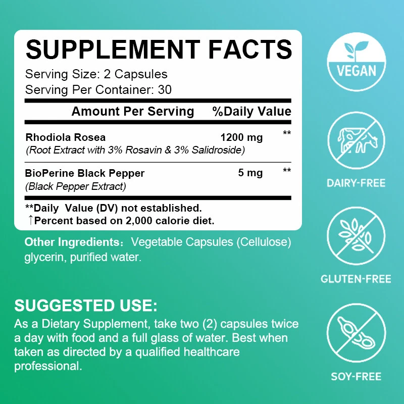 Rhodiola Rosea Root Extract 1200 Mg (60 Capsules)