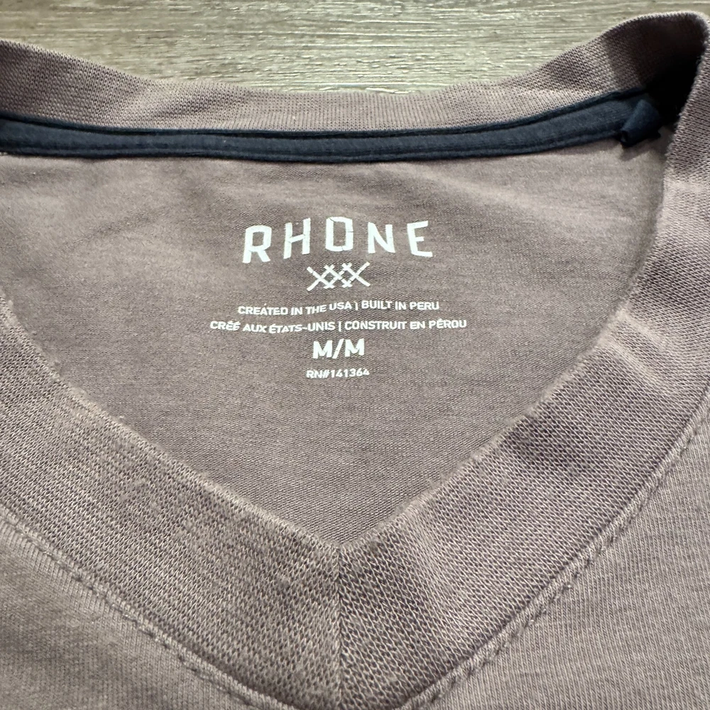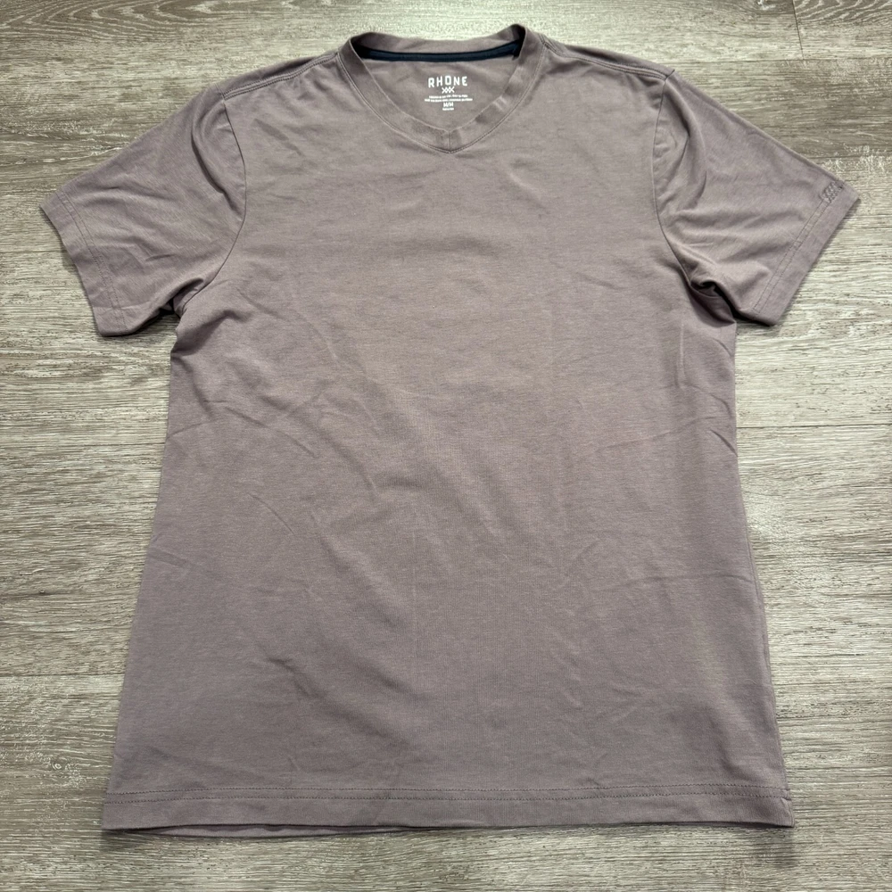 Personalize: No Size: M Pattern: Solid Color: Gray Sleeve Length: Short Sleeve Neckline: V-Neck Style: Pullover Compression Level: Mild Fabric Type: Knit Accents: Embroidered, Logo Size Type: Regular Material: Polyester, Spandex Type: T-Shirt Closure: Pullover Occasion: Activewear, Business, Casual Garment Care: Machine Washable Fabric Wash: Medium Performance/Activity: CrossFit, Cross Training, Golf, Gym & Training, Hiking, Yoga Brand: Rhone Department: Men Sleeve Type: Casual Sleeve Features: Stretch Fit: Athletic