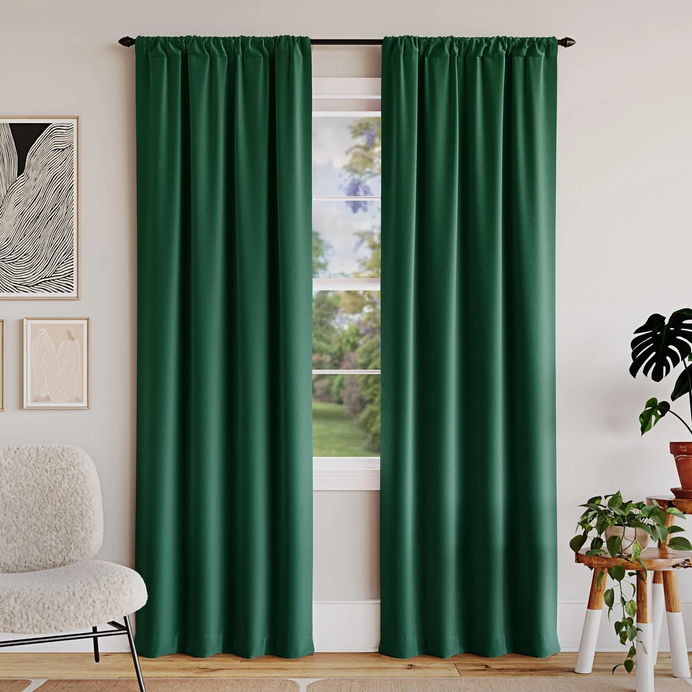 1. These curtains are a total game-changer for my bedroom! The blackout effect is incredible—absolutely no light sneaks in, making sleep so much better. They even help with noise and temperature, keeping the room quieter and more comfortable year-round. The fabric feels high-quality, and the rod pocket design makes them easy to hang. Perfect if you want darkness, peace, and energy savings all in one stylish package.