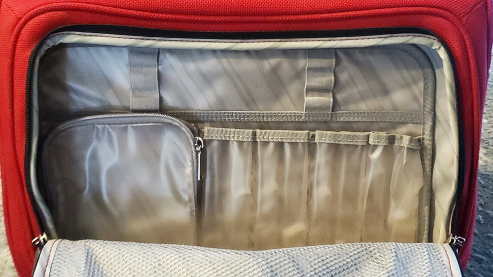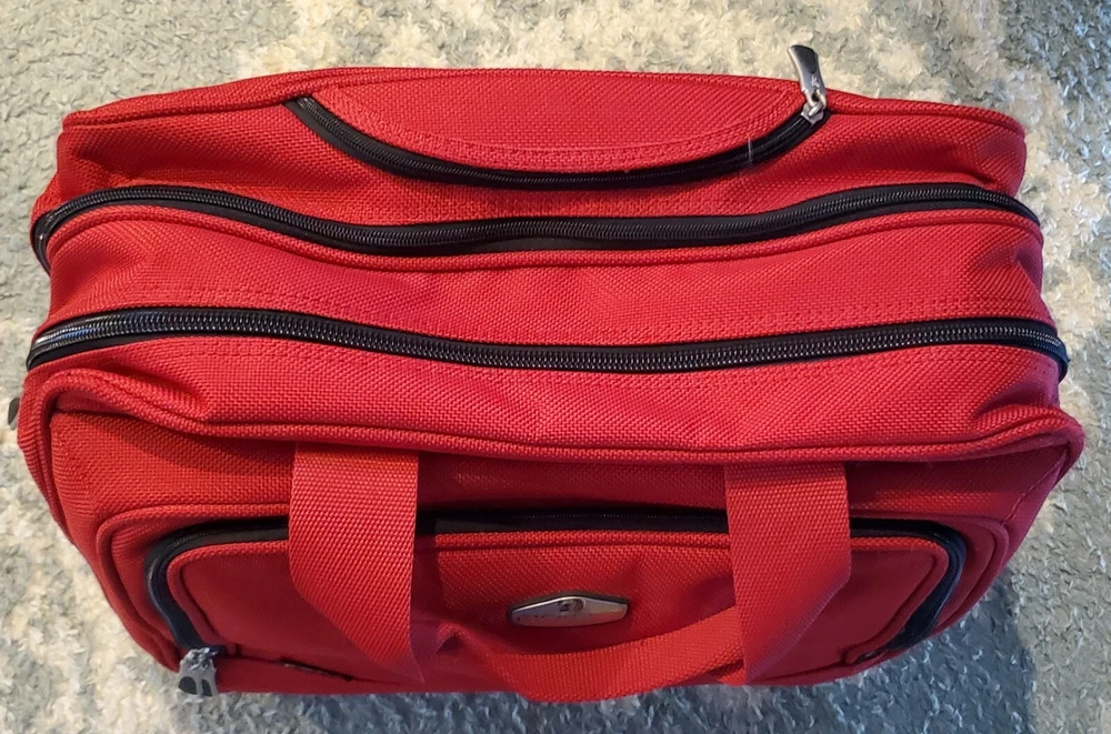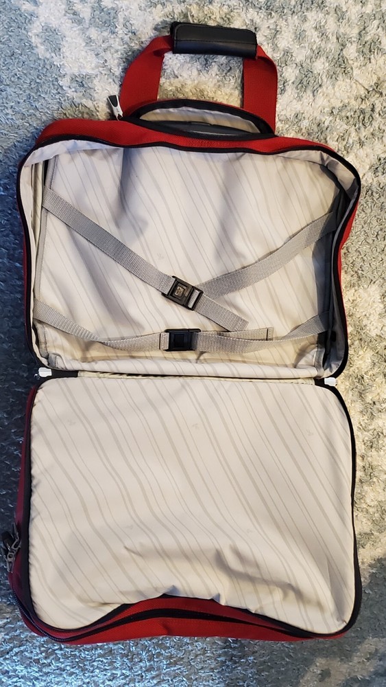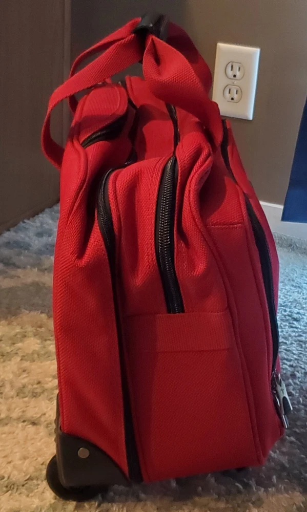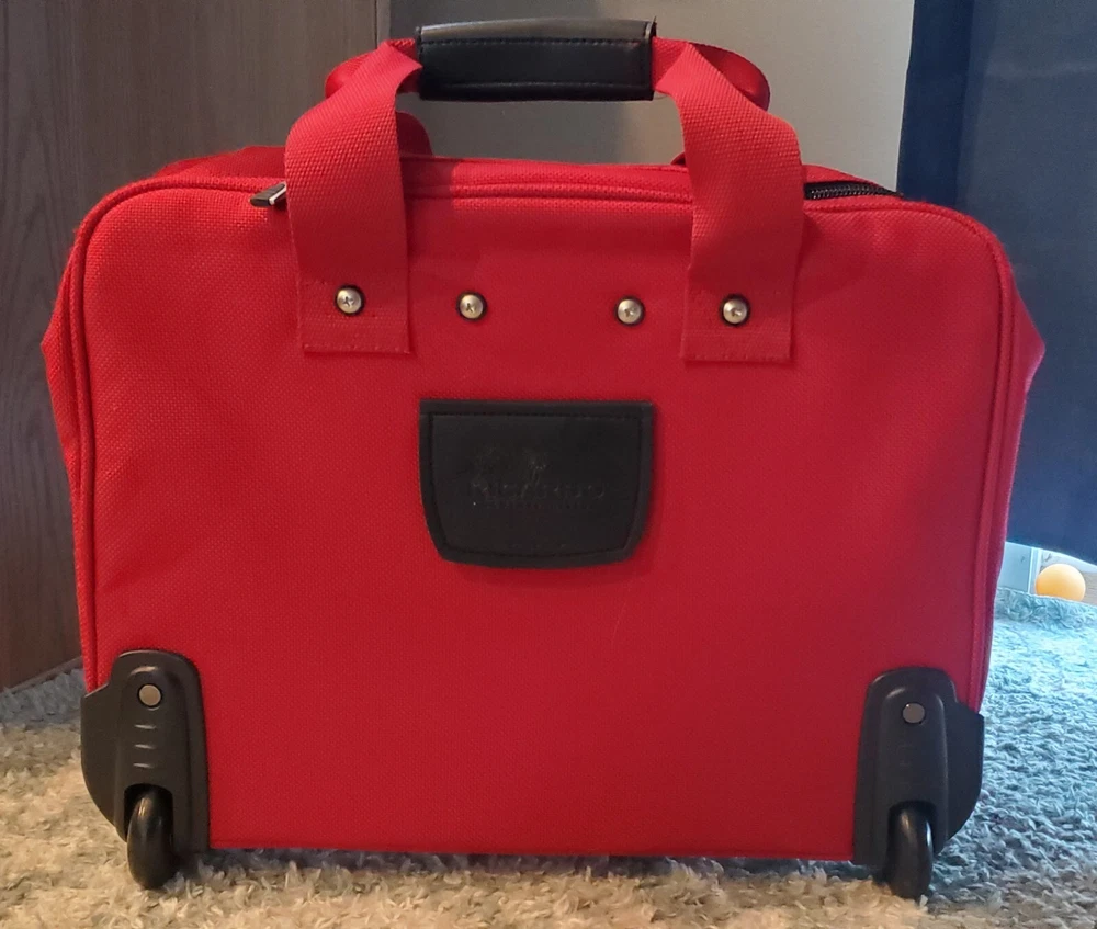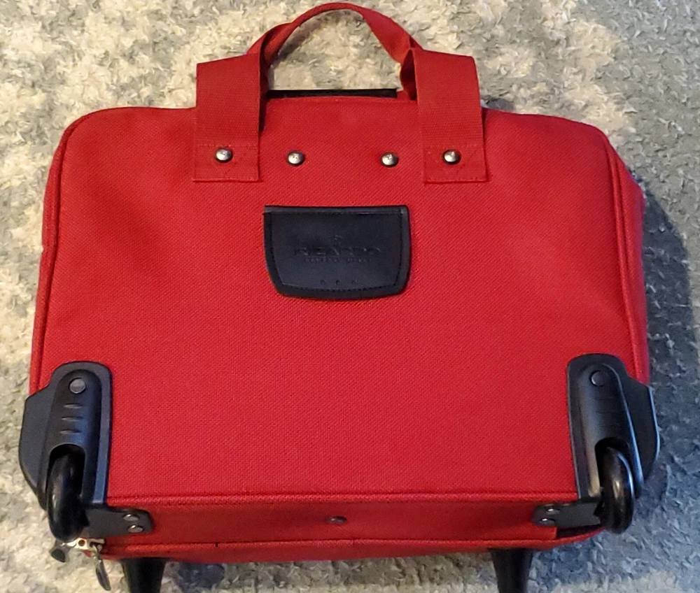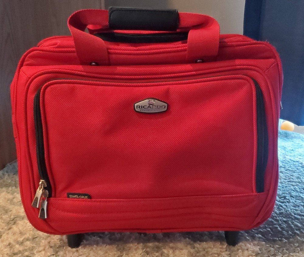 This bag is in great condition--no stains--very clean as it was only used for two week long trips..all the zippers work perfect.. This Ricardo Beverly Hills carry-on luggage bag with wheels and retractable handle is the perfect travel companion. Measuring 17"x14"x9", it's the ideal size for a weekend getaway or short business trip. The bag comes in a stylish red color and features a convenient carry-on design. The bag is pre-owned but still is in great shape, making it in excellent condition. It is perfect for those who want a reliable luggage bag without breaking the bank. With its sturdy construction and 3 storage spaces, this Ricardo Beverly Hills carry-on luggage bag is a must-have for any traveler. Any questions be free to message me before buying..all orders are shipped within 24 hours after payment is received