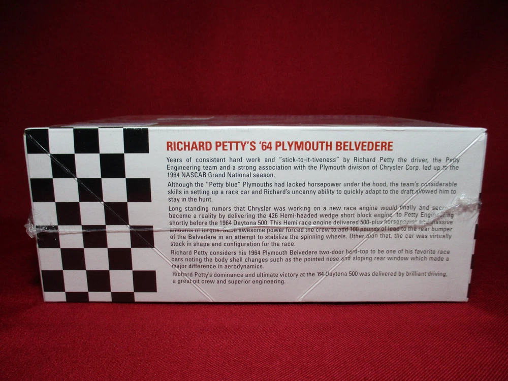 Hello friends, you are looking at a Richard Petty Plymouth Belvedere 1964 Daytona 500 Winner Model Kit. Made by AMT in 2016 . Still factory sealed in the original shrink wrap. Box is bright and clean with only minor signs of age. Model is unused and complete. Scale is 1:25. Please see photos for further details and check out my other items. I am happy to combine shipments when possible. You can use the "Request Total" option or message me for an updated invoice when you are ready to pay for multiple items. Otherwise you can pay the full amount charged by eBay and all excess shipping costs will be refunded when your items are sent. All items are described accurately, packed safely and sent quickly. Customs fees or other taxes/charges are the buyer's responsibility. You will receive a notification when your order is shipped. You are buying from a trusted seller with nearly 20 years of experience. Please contact me with any questions or concerns, I respond to all messages. Your complete satisfaction is very important to me. Check my listings again soon, new items are added every week.