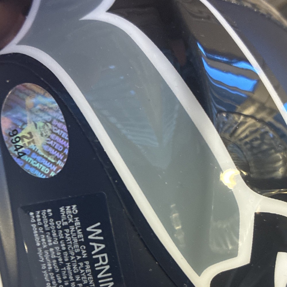 The product is a mini helmet autographed by Richard Sherman of the Seattle Seahawks. The autograph is certified by Richard Sherman himself, ensuring its authenticity. This collectible item is perfect for fans of football and the Seattle Seahawks, as it features an original autograph from a player who has played for the team. The mini helmet is a unique piece of memorabilia that would make a great addition to any sports memorabilia collection.